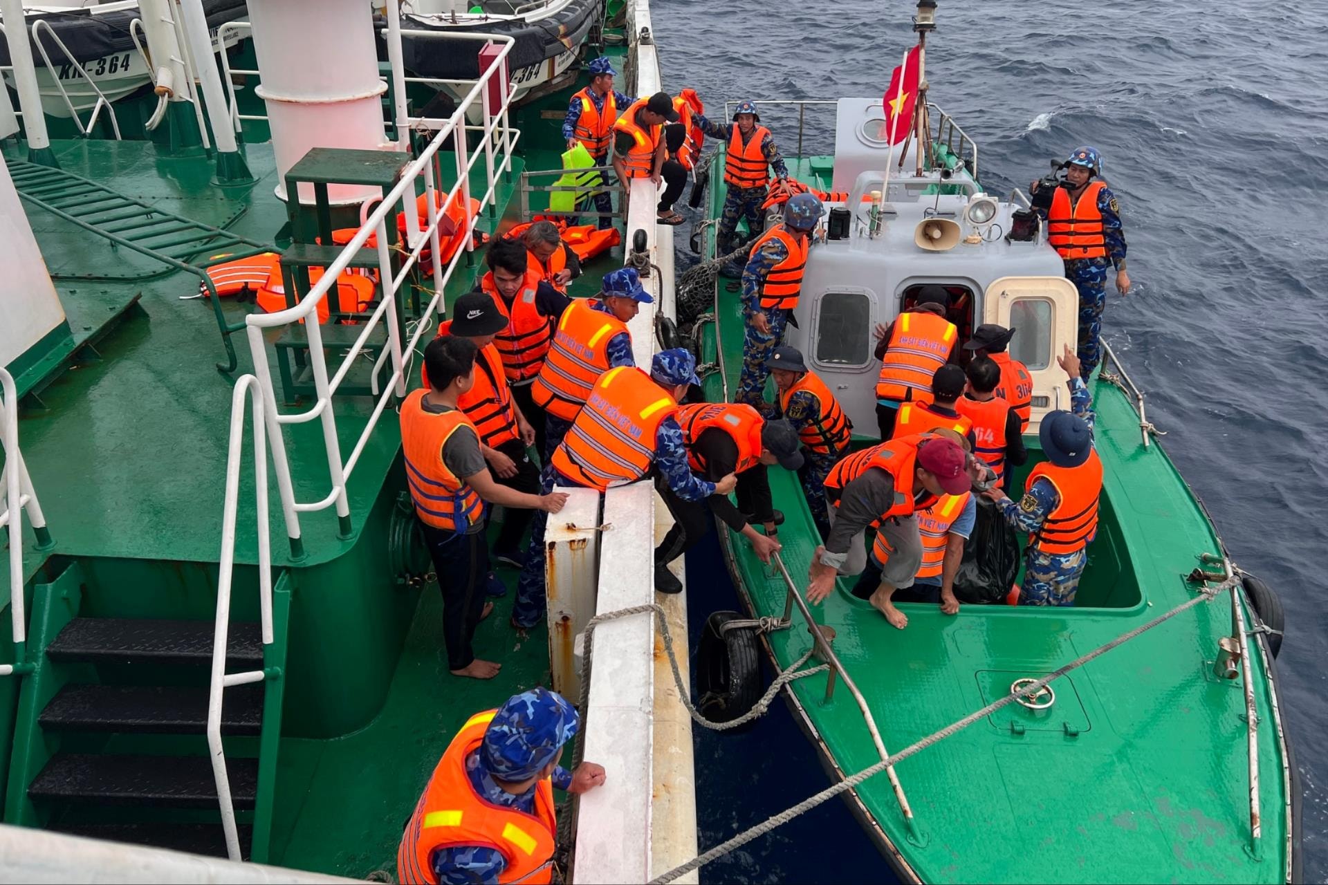Rạng sáng 18/12, Tàu Cảnh sát biển 364 thuộc Bộ Tư lệnh Vùng Cảnh sát biển 2 đã kịp thời tiếp cận, tiếp nhận an toàn 52 thuyền viên tàu cá QNa 91917 TS của ngư dân TP. Đà Nẵng bị chìm khi đang hoạt động trên vùng biển quần đảo Trường Sa.
