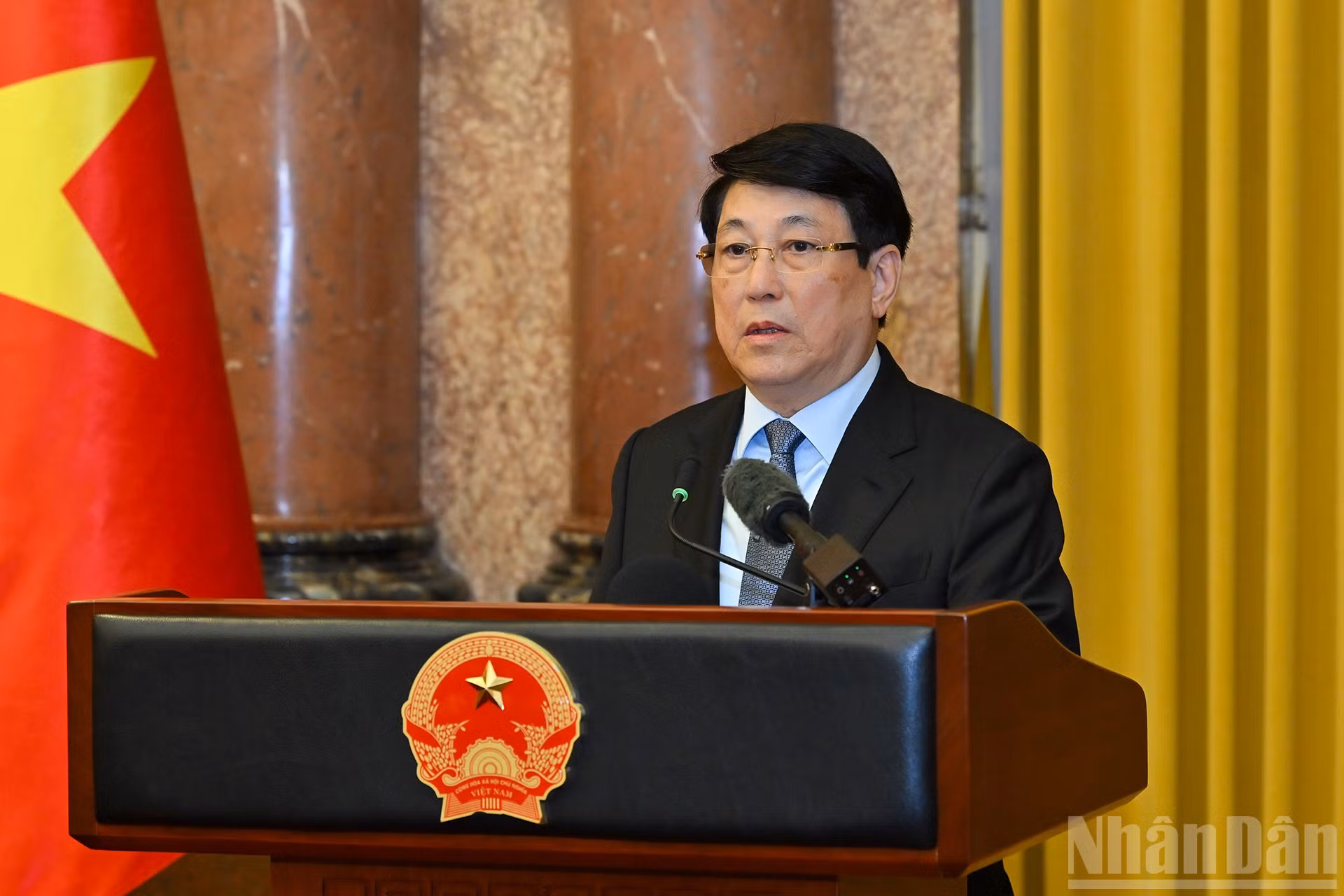 Chủ nhiệm Văn phòng Chủ tịch nước Lê Khánh Hải báo cáo tại hội nghị.