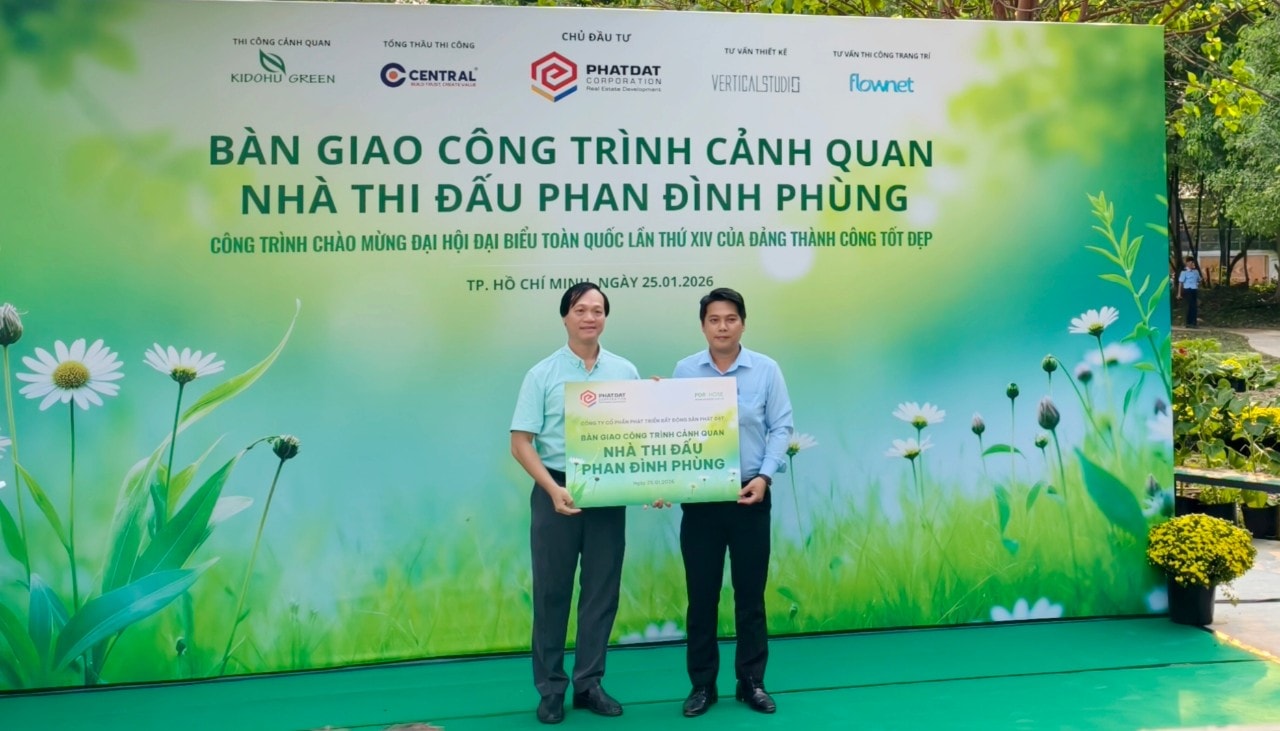 Công trình cảnh quan tại Nhà thi đấu Phan Đình Phùng được Công ty cổ phần phát triển bất động sản Phát Đạt đầu tư và triển khai theo chủ đề “Rừng sinh thái trong lòng đô thị”, với định hướng tạo lập một không gian xanh có giá trị cả về cảnh quan, sinh thái và trải nghiệm tinh thần cho người dân thành phố.