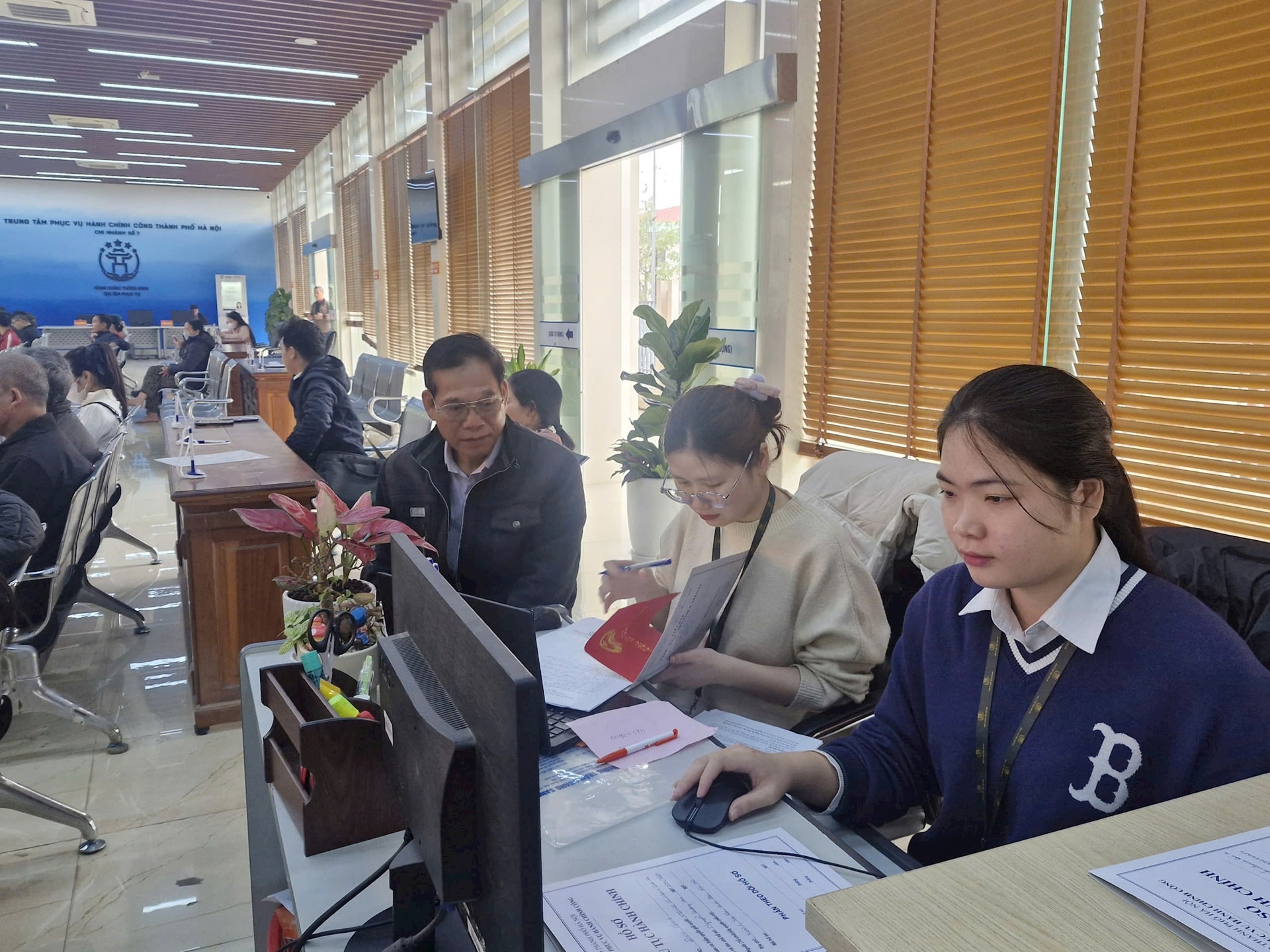 Giải quyết thủ tục hành chính tại Chi nhánh số 7 - Trung tâm Phục vụ hành chính công thành phố Hà Nội. Ảnh: PV