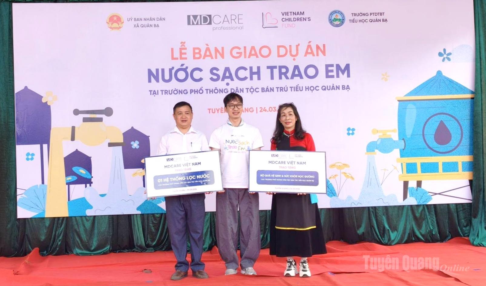Trong khuôn khổ dự án đã trao tặng hệ thống lọc nước uống tinh khiết công nghệ thẩm thấu ngược công suất 300 lít/giờ trị giá 249 triệu đồng cho trường Phổ thông Dân tộc bán trú Tiểu học Quản Bạ. Hệ thống sẽ cung cấp nước sạch phục vụ cho 402 học sinh và 37 cán bộ, giáo viên tại trường, nguồn nước uống sử dụng trực tiếp từ vòi đảm bảo vệ sinh, đáp ứng 11 chỉ tiêu lý hóa và 5 chỉ tiêu vi sinh theo tiêu chuẩn nước uống trực tiếp của Bộ Y tế.
