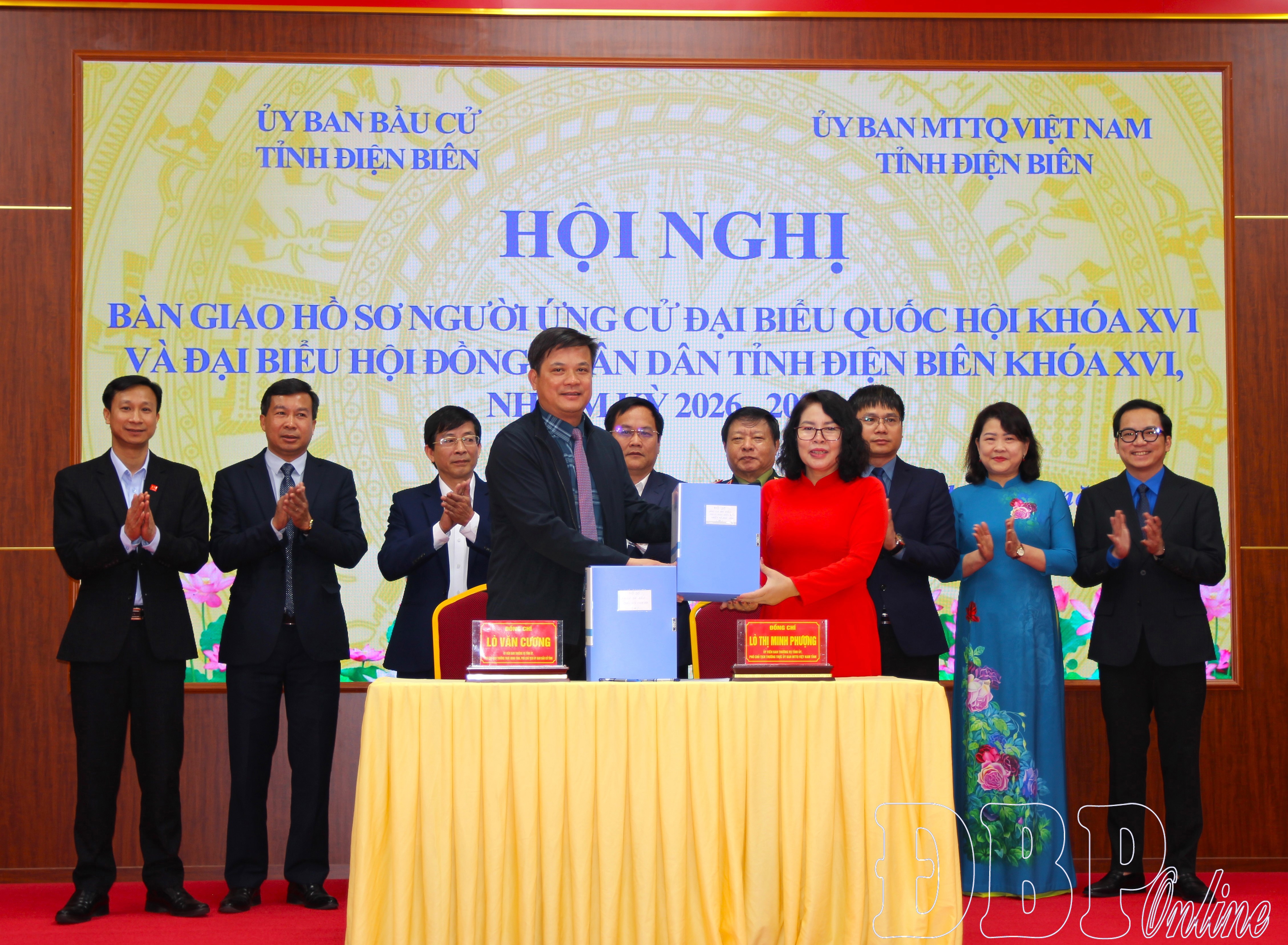 Dự bàn giao hồ sơ có các đồng chí: Lò Văn Cương, Ủy viên Ban Thường vụ Tỉnh ủy, Phó Chủ tịch Thường trực UBND tỉnh, Phó Chủ tịch Ủy ban Bầu cử tỉnh; Lò Thị Minh Phượng, Ủy viên Ban Thường vụ Tỉnh ủy, Phó Chủ tịch Thường trực Ủy ban MTTQ Việt Nam tỉnh.