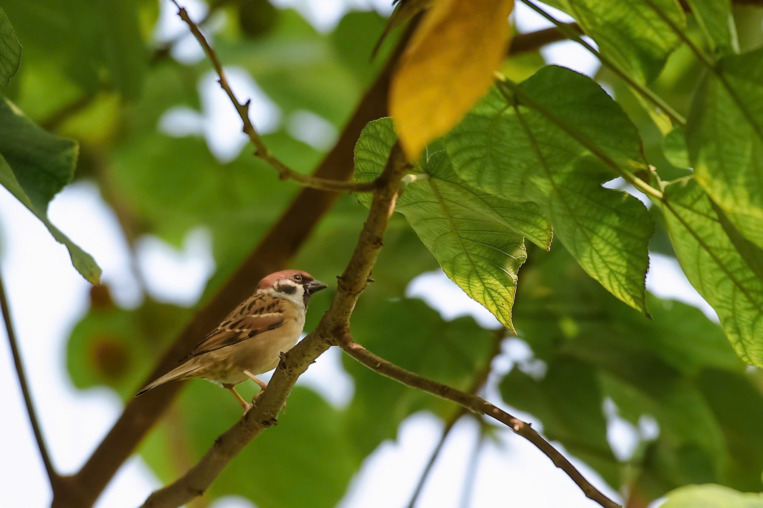 Con chim sẻ bên tán cây ở gò Đống Đa.