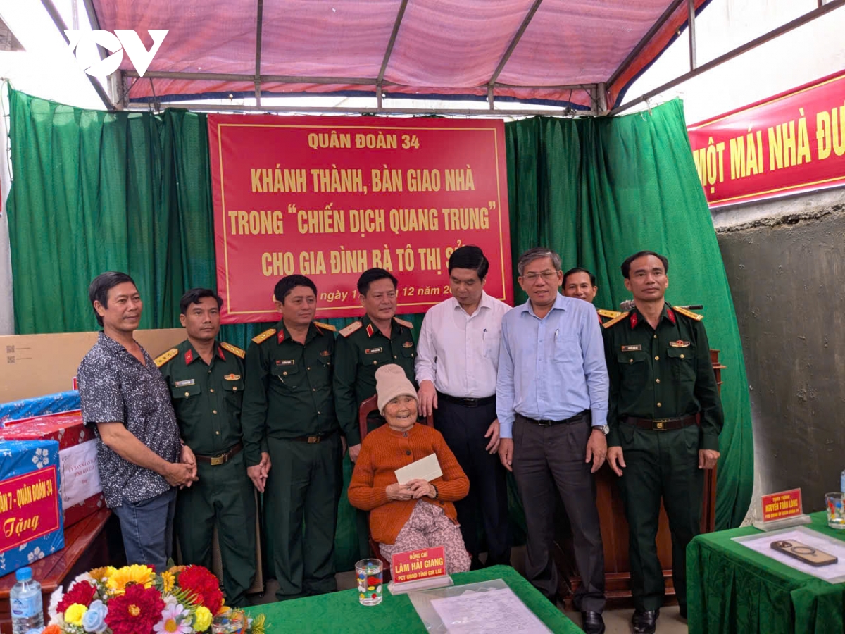 Sau gần 15 ngày triển khai với tinh thần “thần tốc thi công, thần tốc về đích”, ngôi nhà đầu tiên trong "Chiến dịch Quang Trung" ở Gia Lai đã được quân đoàn 34 khánh thành bàn giao cho gia đình bà Tô Thị Sửa (88 tuổi, thôn Chánh Hội, xã Phù Mỹ), vượt tiến độ đề ra.