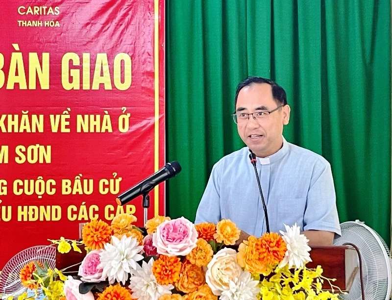 Linh mục Nguyễn Văn Thường, Giám đốc Caritas Thanh Hóa, phát biểu tại buổi lễ.
