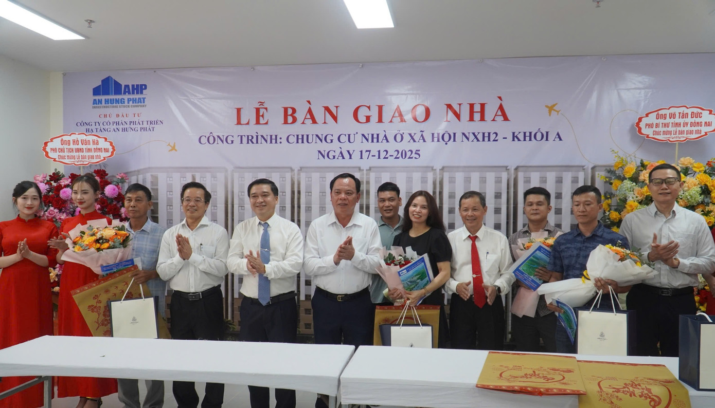 Ngày 17/12, Công ty CP Phát triển hạ tầng An Hưng Phát tổ chức bàn giao nhà ở cho người dân tại dự án nhà ở xã hội NXH2 - khối A (phường Phước Tân, Đồng Nai).