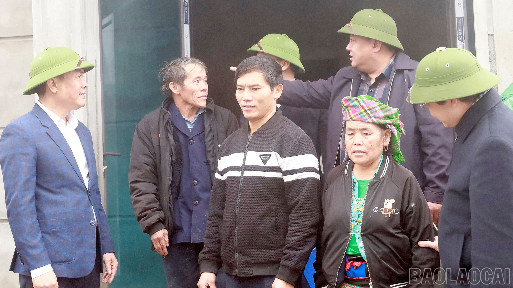 Lãnh đạo xã Mường Bo trò chuyện, trao đổi với các hộ dân được xây dựng nhà tái định cư.