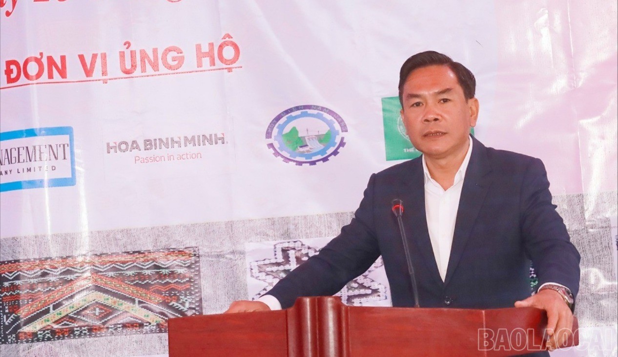 Đồng chí Nguyễn Trung Kiên - Bí thư Đảng ủy xã Mường Bo phát biểu tại buổi lễ.