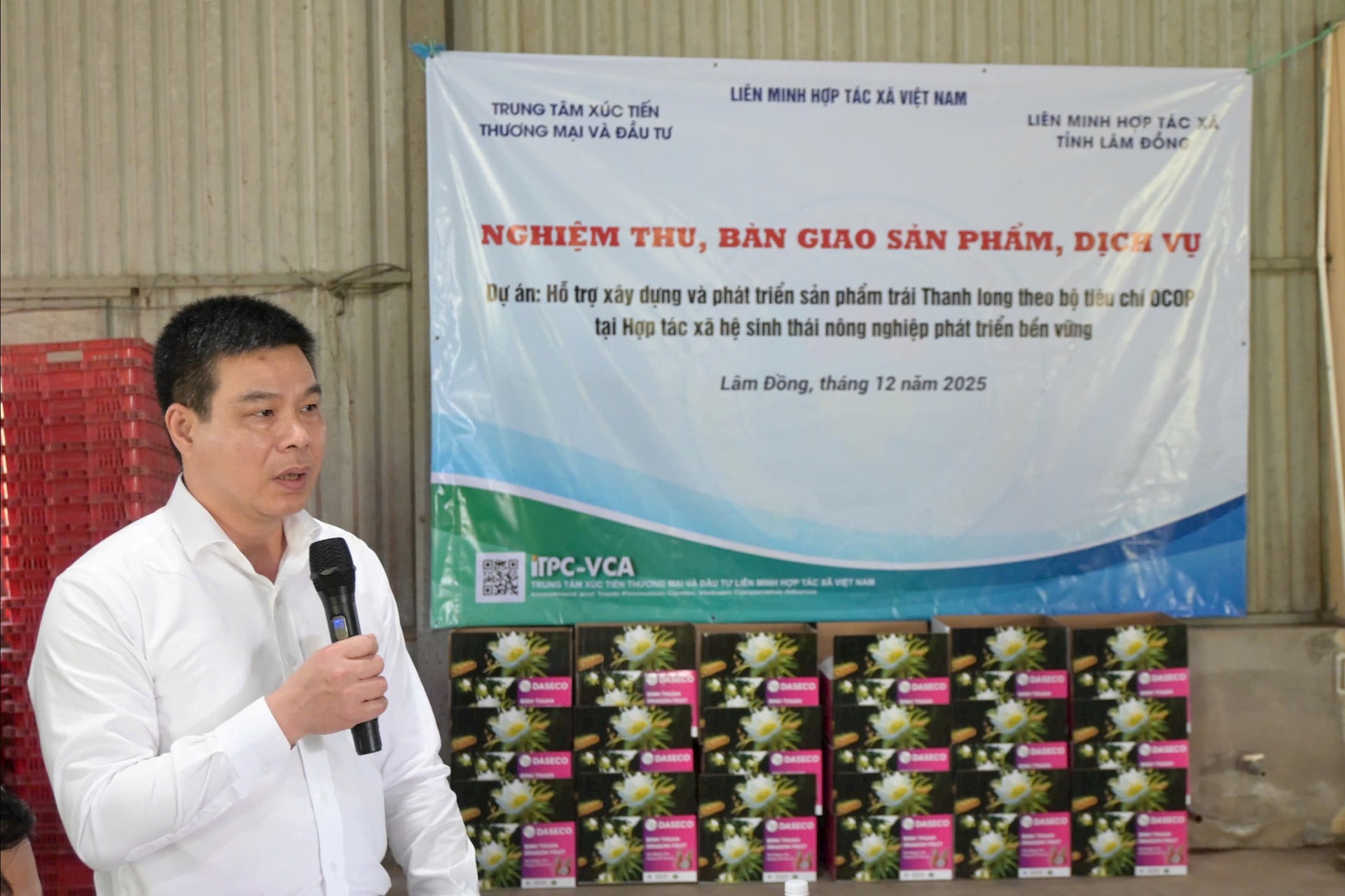 Tại buổi bàn giao, ông Vũ Quang Phong, Tổng Giám đốc Trung tâm Xúc tiến thương mại và đầu tư cho biết: HTX Hệ sinh thái nông nghiệp phát triển bền vững đáp ứng đầy đủ các tiêu chí, quy định để được hỗ trợ triển khai thực hiện dự án.