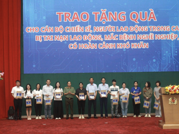 Thứ trưởng Đặng Hồng Đức trao quà tặng CBCS, NLĐ trong CAND bị tai nạn lao động, mắc bệnh nghề nghiệp, có hoàn cảnh khó khăn.