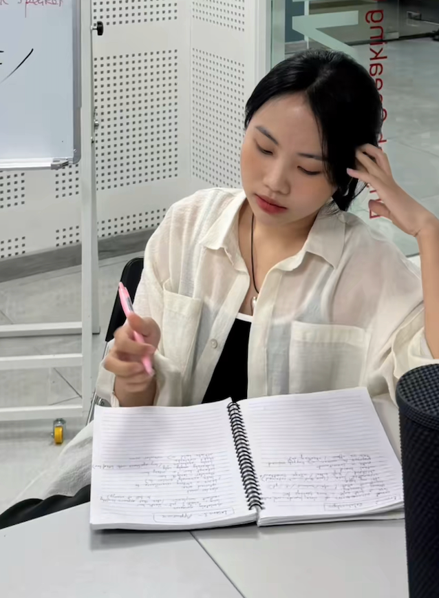 Khoảnh khắc Phương Mỹ Chi chăm chỉ học tập ở trường Đại học. Ảnh chụp màn hình