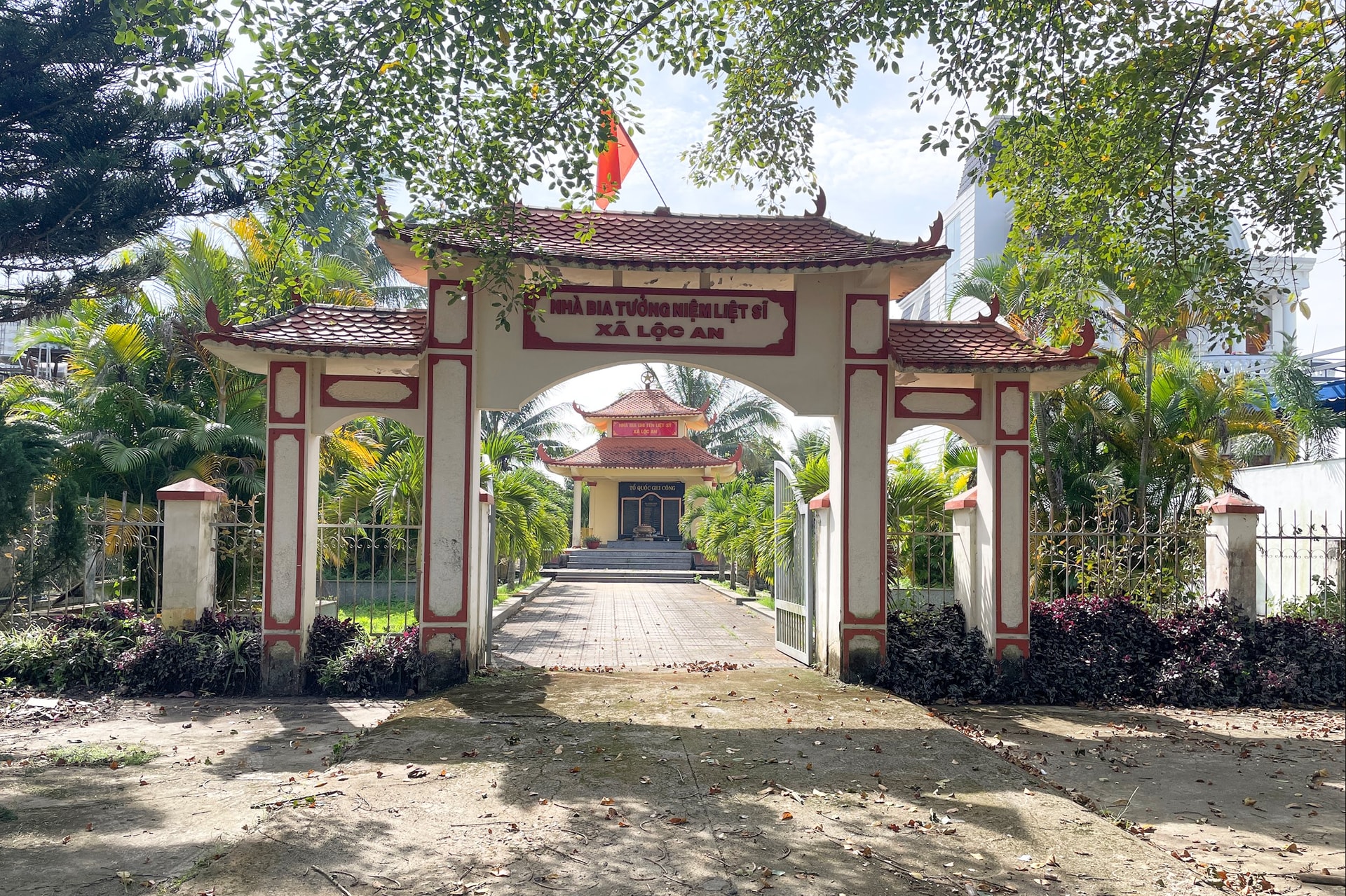 Nhà bia tưởng niệm các liệt sĩ xã Lộc An nằm khiêm tốn ngay cạnh Quốc lộ 20