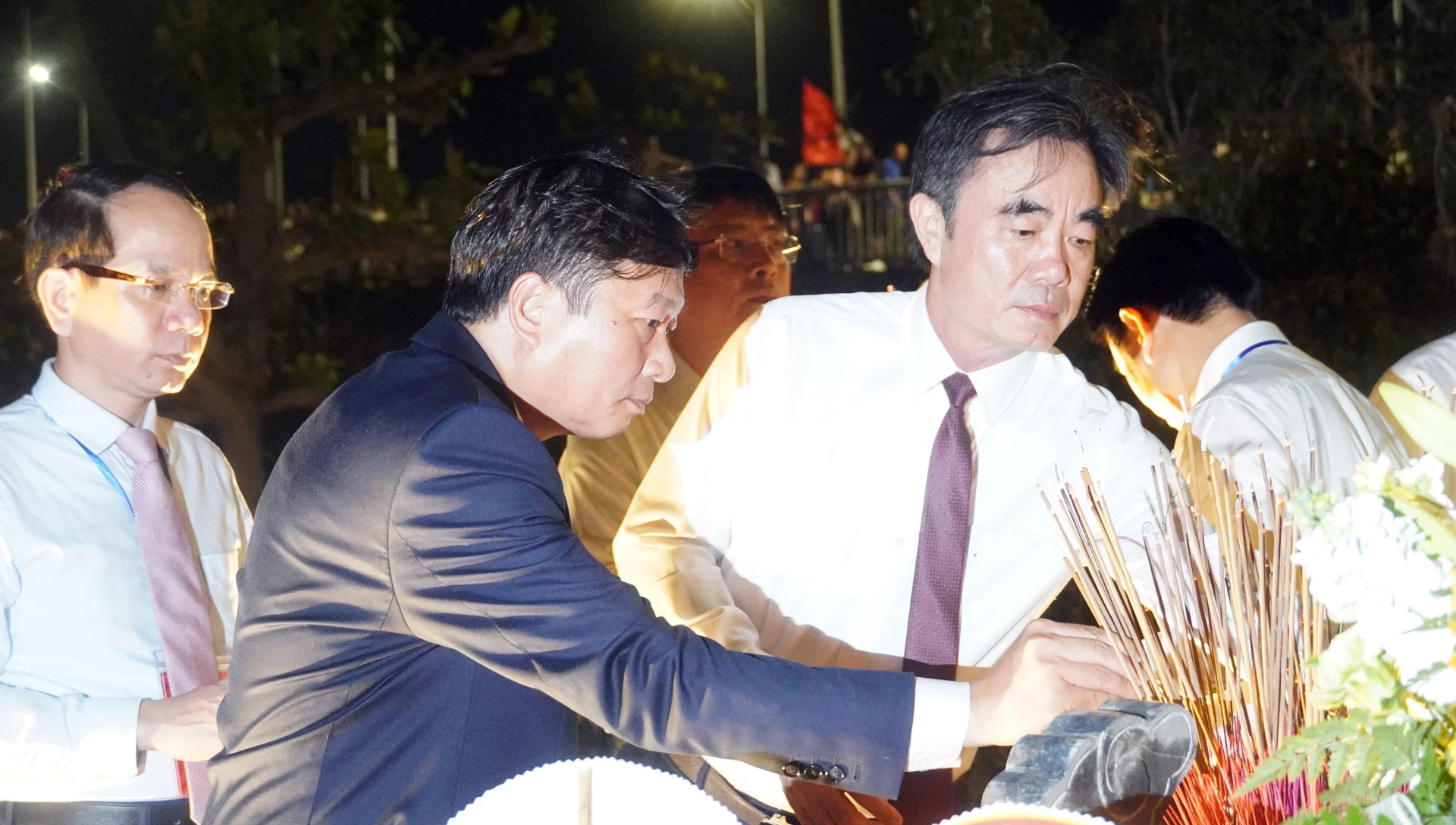 Đồng chí Lê Tiến Châu, Phó Thủ tướng Chính phủ và các đồng chí lãnh đạo dâng hương tại Tượng đài chiến thắng sông Gianh - Ảnh: X.P