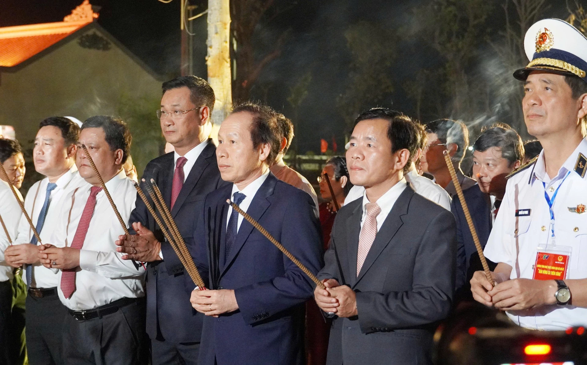 Các đồng chí lãnh đạo tỉnh dâng hương tại Di tích Bến phà Gianh - Ảnh: N.M
