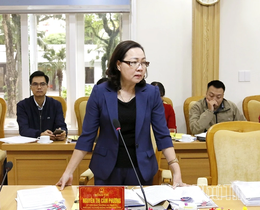 Phó Chủ tịch HĐND tỉnh Nguyễn Thị Cẩm Phương phát biểu tại hội nghị