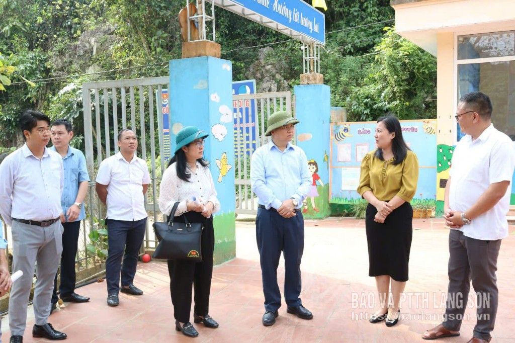 Đoàn công tác khảo sát nhu cầu sử dụng nước tại Trường Mầm non xã Tân Văn