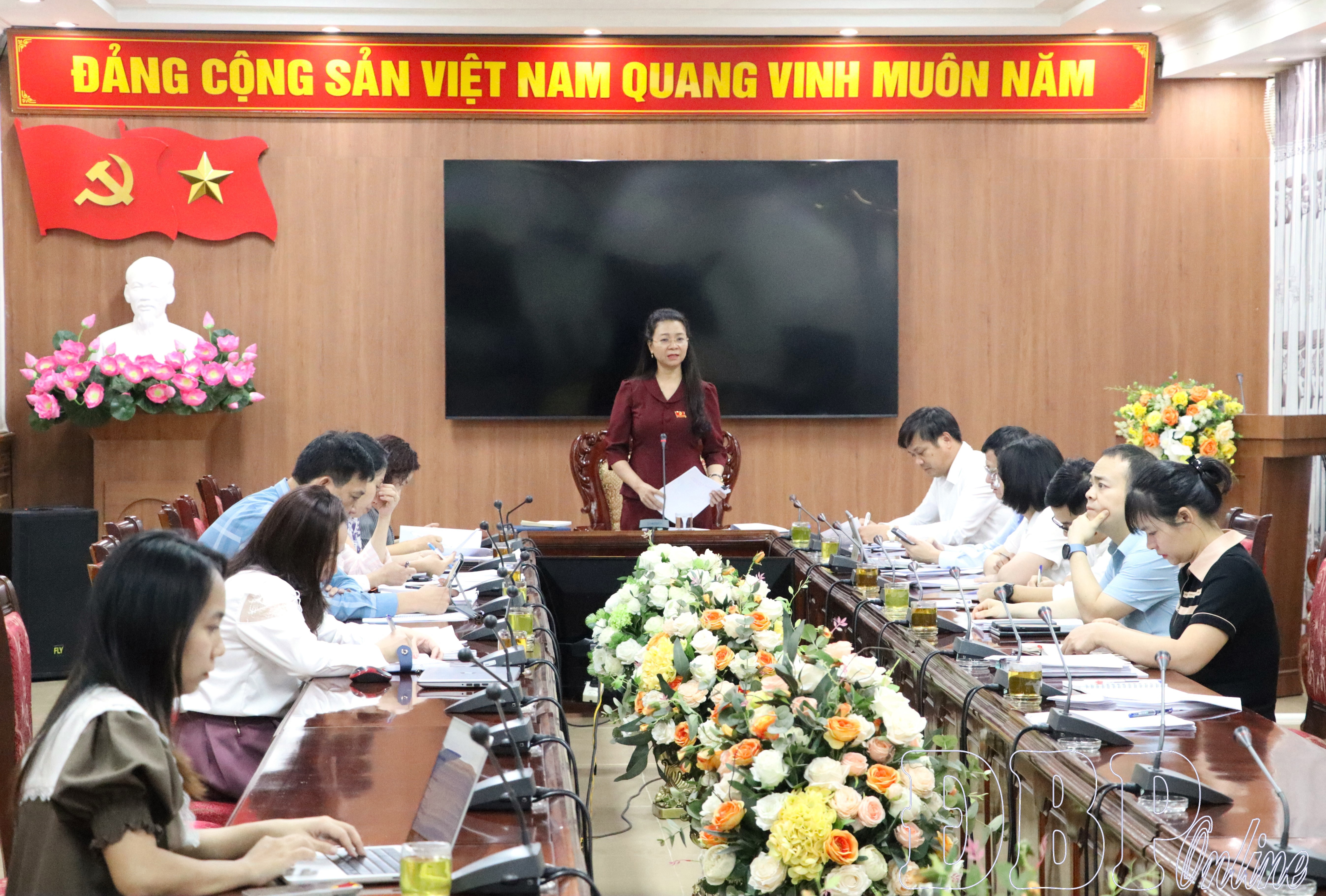 Trưởng Ban Kinh tế - Ngân sách Lỳ Thị Phương Diện chủ trì cuộc họp.