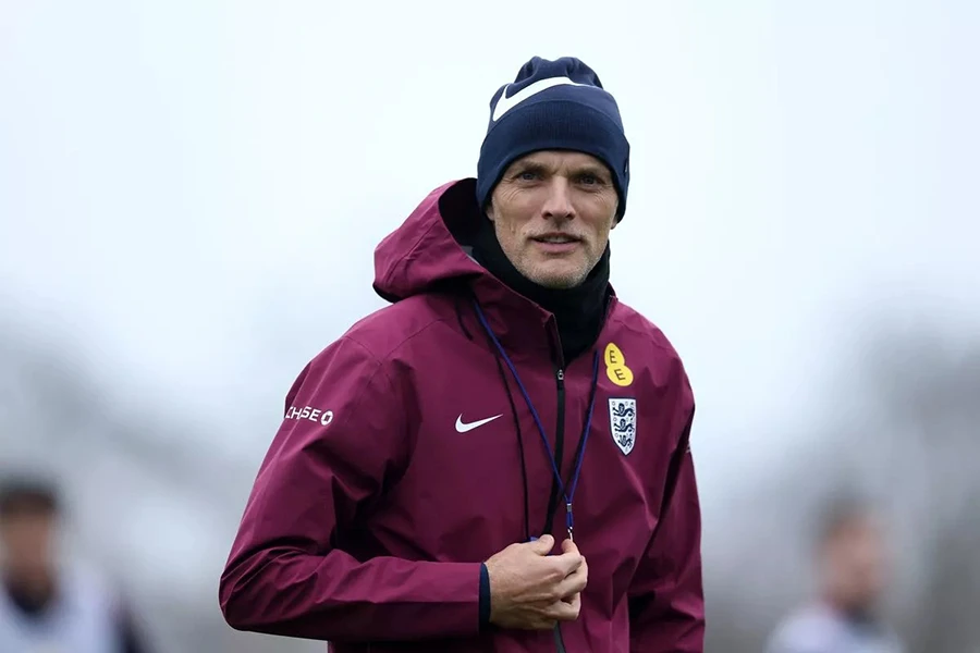 HLV tuyển Anh Thomas Tuchel là ứng cử viên ngồi ghế nóng ở Manchester United. ẢNH: THE FA