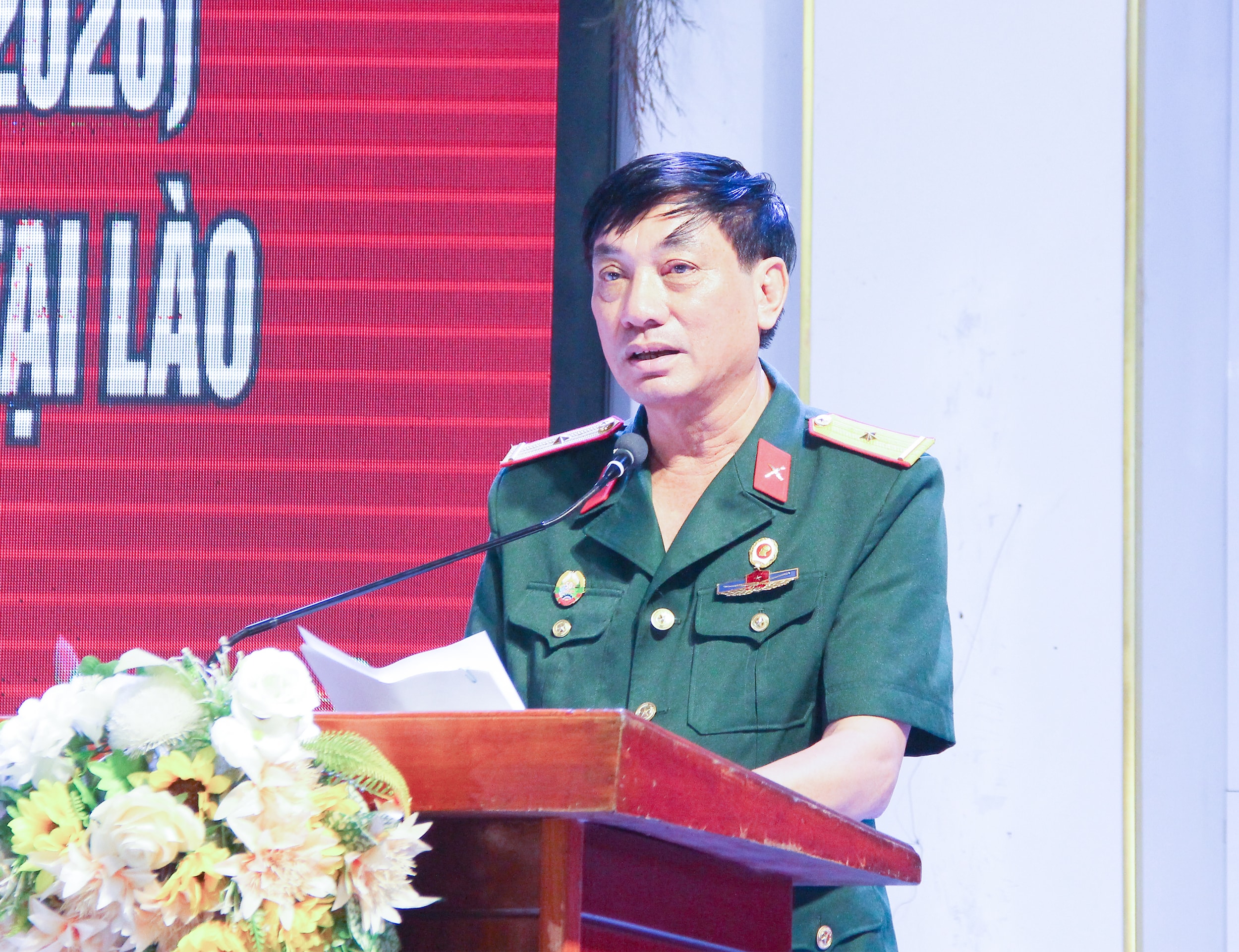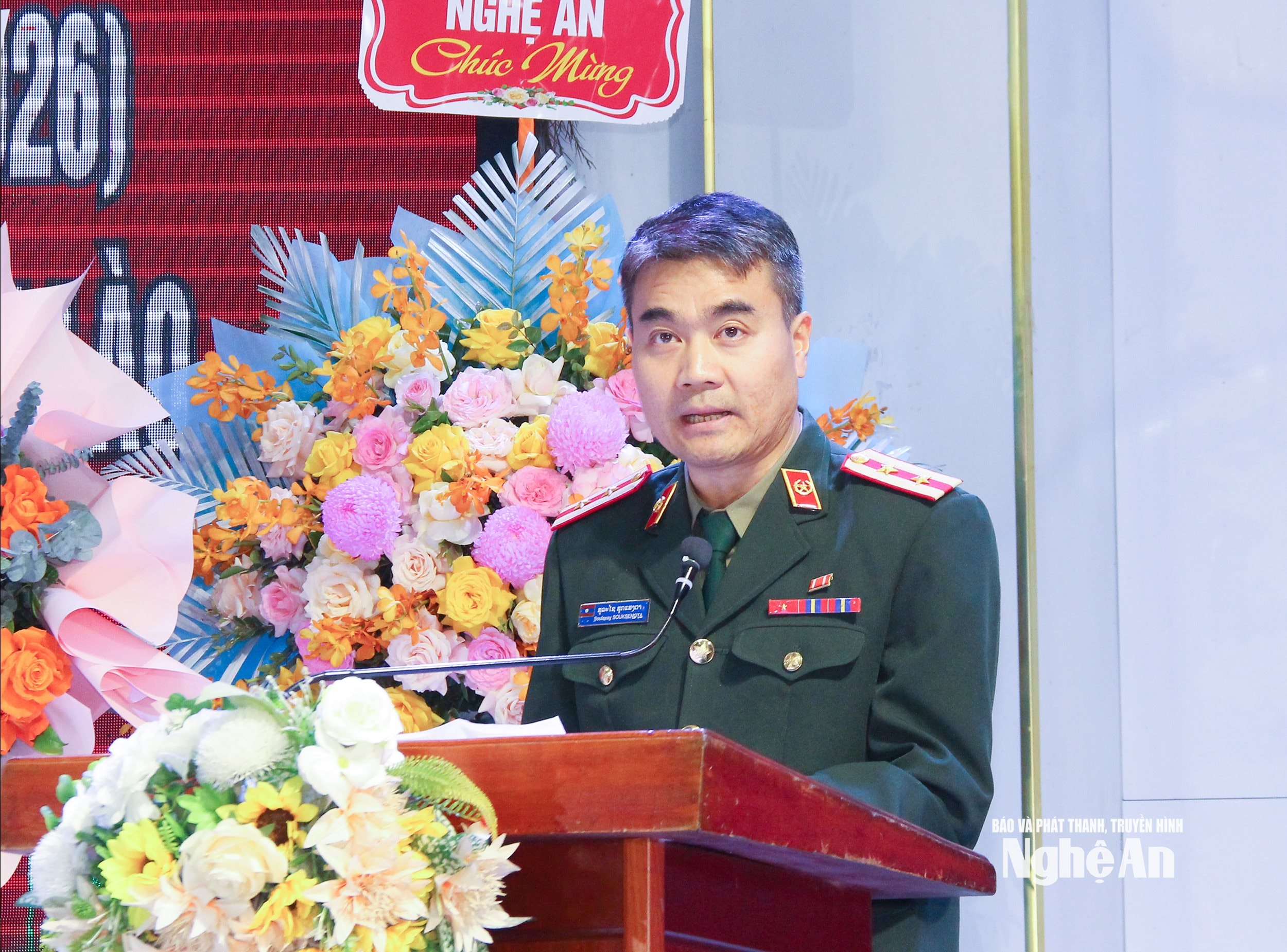 Trung tá Su La Xay - Phó Tùy viên Quốc phòng, Đại sứ quán Lào tại Việt Nam phát biểu tại Lễ kỷ niệm. Ảnh: Mai Hoa