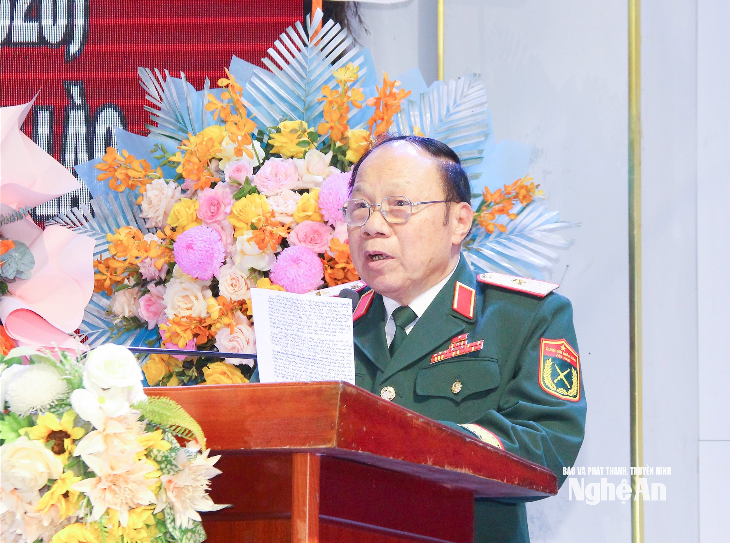 Thiếu tướng Nguyễn Văn Học - nguyên Phó Tư lệnh Quân khu IV phát biểu tại Lễ kỷ niệm. Ảnh: Mai Hoa