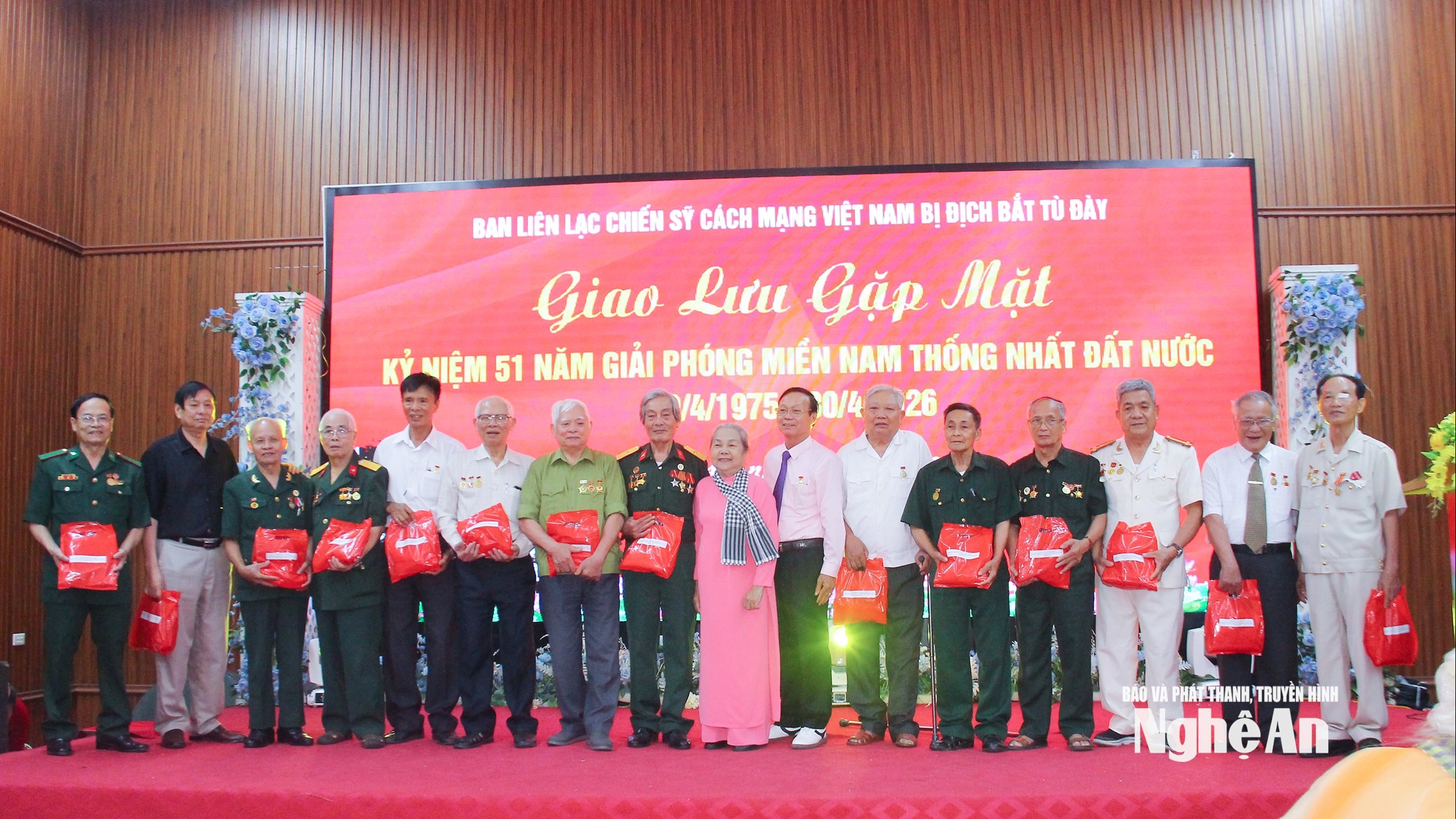 Lãnh đạo Ủy ban MTTQ Việt Nam và các ngành, đoàn thể tỉnh Nghệ An và các chiến sĩ cách mạng bị địch bắt, tù đày tham dự chương trình gặp mặt. Ảnh: Mai Hoa