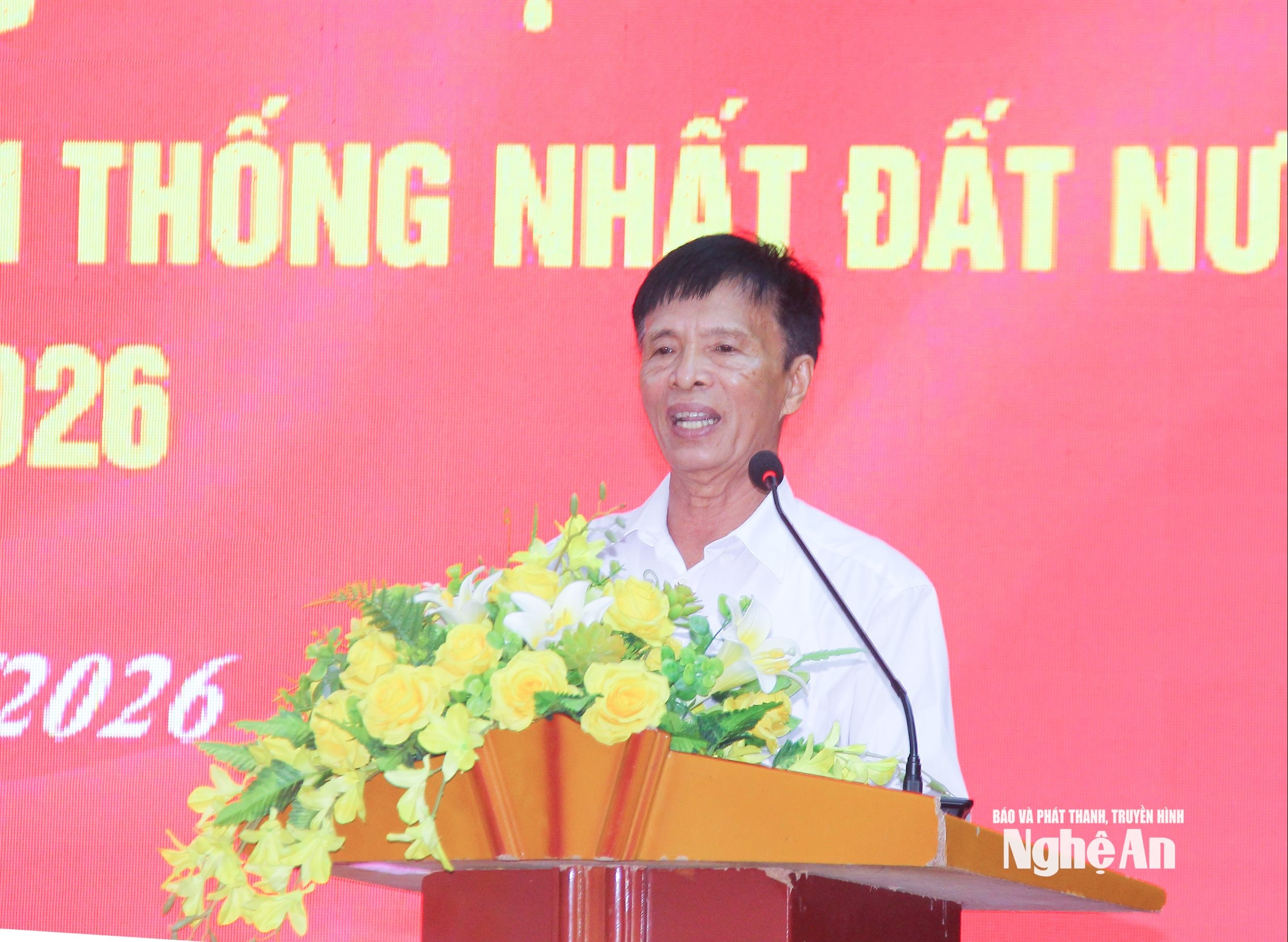 Phó Chủ tịch Ủy ban MTTQ Việt Nam tỉnh Nghệ An gửi lời chúc các chiến sĩ cách mạng bị địch bắt tù đày luôn mạnh khỏe, tiếp tục là những nhân chứng lịch sử sống động, truyền cảm hứng cách mạng, hun đúc ý chí và trách nhiệm cho các tầng lớp nhân dân, thế hệ trẻ trong xây dựng và bảo vệ Tổ quốc.