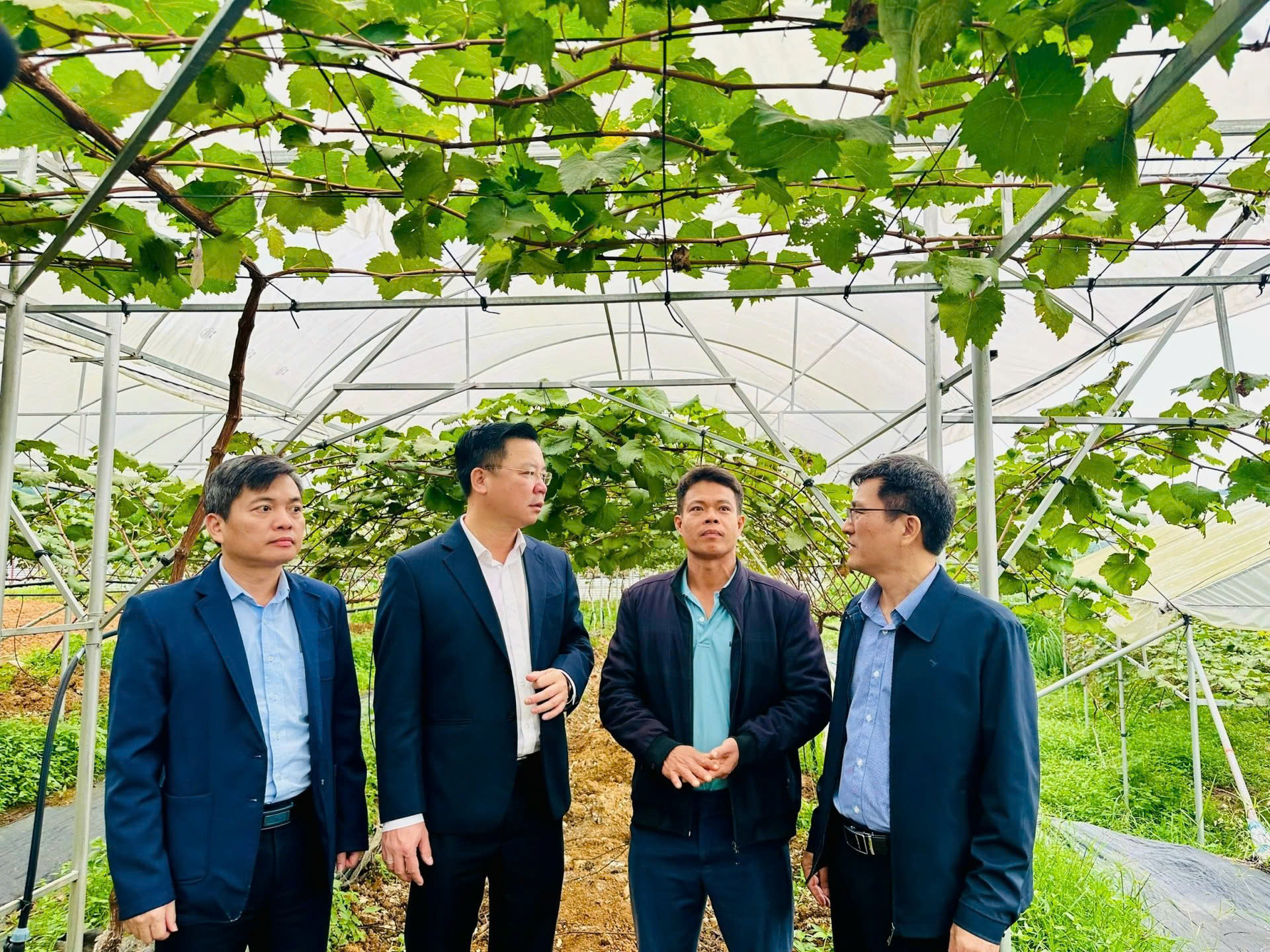 Lãnh đạo địa phương kiểm tra mô hình nông thôn mới ở xã Yên Xuân.