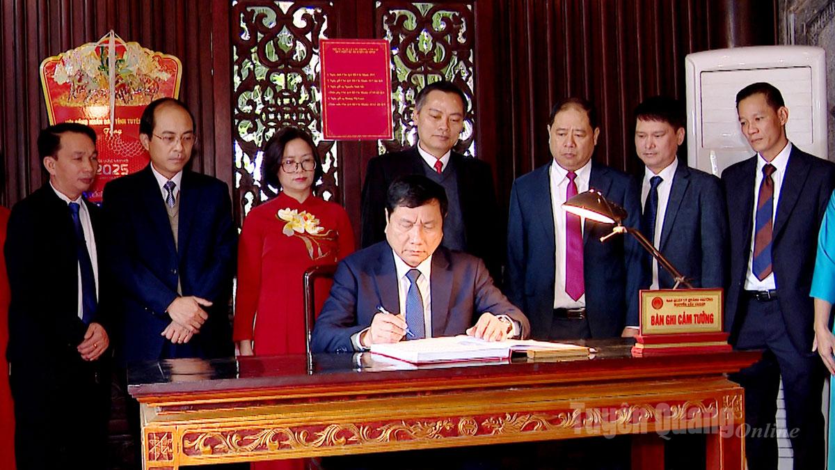 Đồng chí Trưởng ban Nội chính Tỉnh ủy Phùng Tiến Quân ghi lưu bút tại Đền thờ Chủ tịch Hồ Chí Minh.