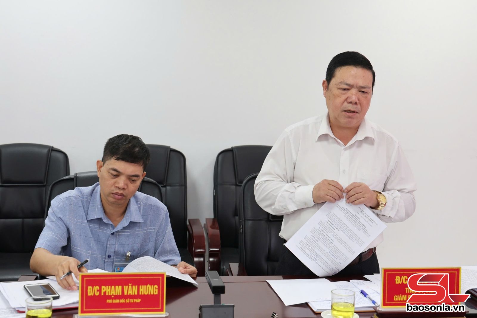Lãnh đạo Sở Tư pháp báo cáo tại cuộc làm việc.