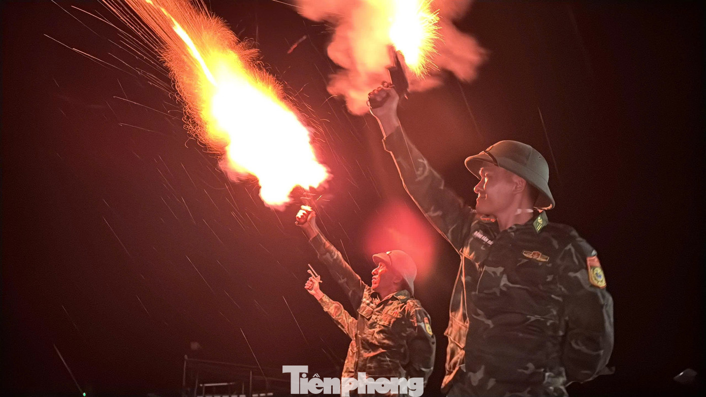 BĐBP Quảng Ngãi bắn pháo hiệu kêu gọi tàu thuyền vào nơi tránh trú an toàn.