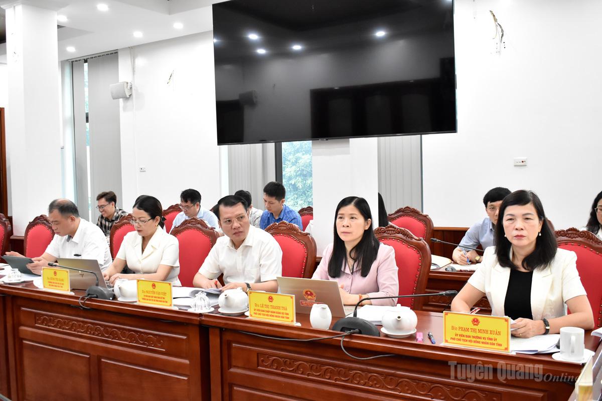 Đồng chí Phạm Thị Minh Xuân, Phó Chủ tịch HĐND tỉnh và đồng chí Lê Thị Thanh Trà, Phó Chủ tịch HĐND tỉnh cùng các đại biểu dự họp thẩm tra các dự thảo nghị quyết trình Kỳ họp chuyên đề.