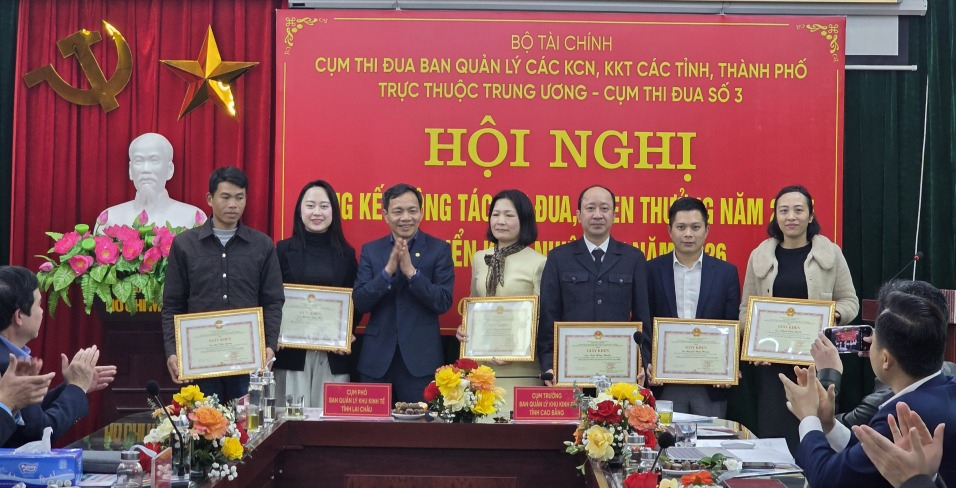 Nhân dịp này, 6 cá nhân điển hình tiên tiến năm 2025 nhận Bằng khen của Cụm thi đua; các đơn vị tiến hành bình xét, lựa chọn tập thể đề nghị Bộ Tài chính khen thưởng.