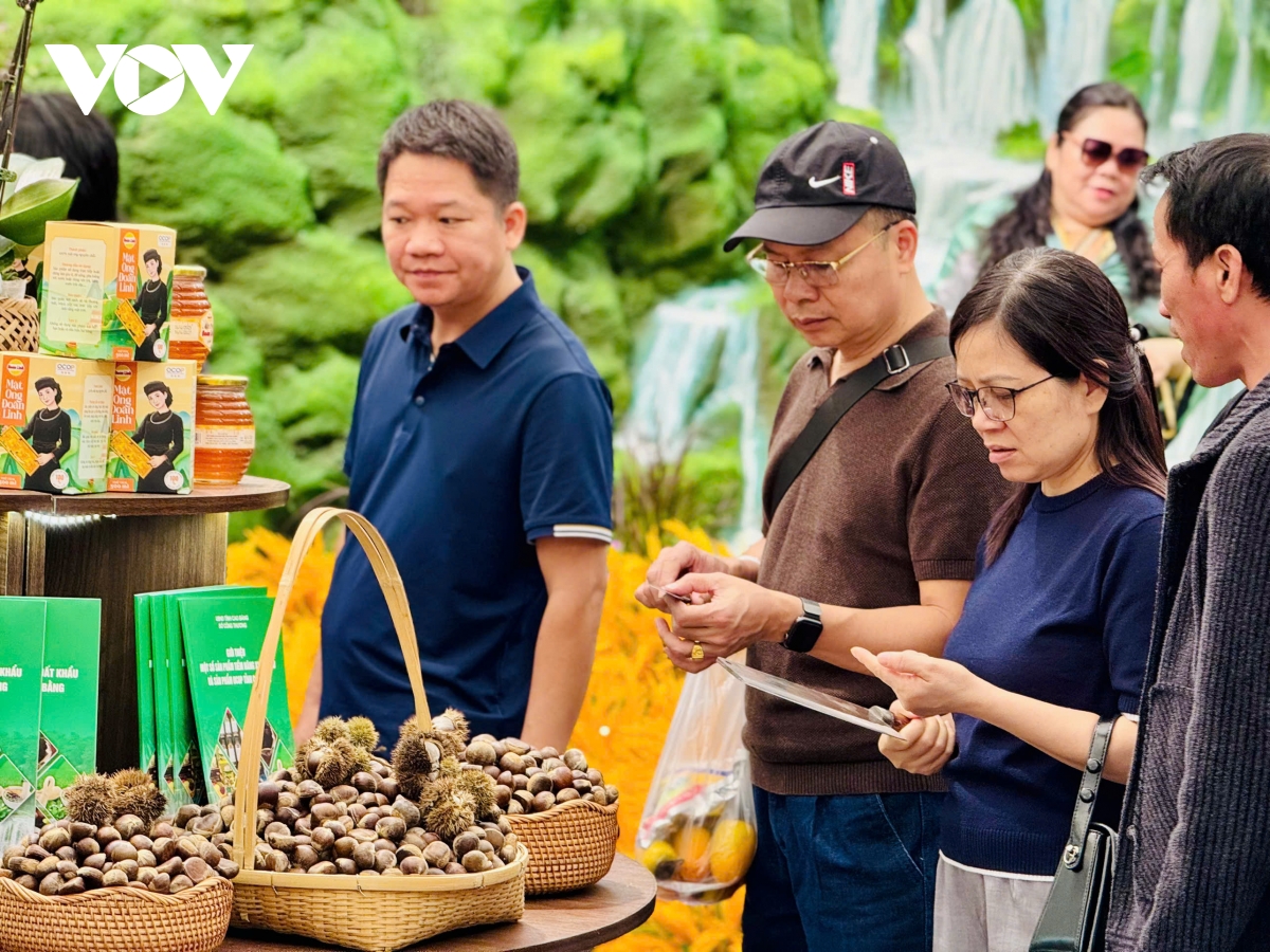 Tại khu trưng bày, quảng bá sản phẩm chủ đề “Cao Bằng - Bốn mùa sản vật” (Sảnh 7, phân khu “Thu đất việt – Sắc nước hương thu”), các sản phẩm nông sản tiêu biểu, đặc trưng, sản phẩm OCOP tại Cao Bằng được giới thiệu đa dạng, phong phú theo chủ đề 4 mùa trong năm. Mùa xuân ở Cao Bằng có gạo nếp hương, bánh chưng, xôi ngũ sắc, bánh khảo...; mùa hè có món thạch (đen, mác púp, xỏm đeng), các loại trà giảo cổ lam, chàm tía, nụ vối...; mùa thu có hạt dẻ Trùng Khánh, bún khô ngũ sắc, lạc đỏ Bản Khòng, trám đen, mật ong...; mùa đông có miến dong, gia vị hữu cơ, dầu Sở Bảo Lạc, tinh dầu hồi, quế, sả...
