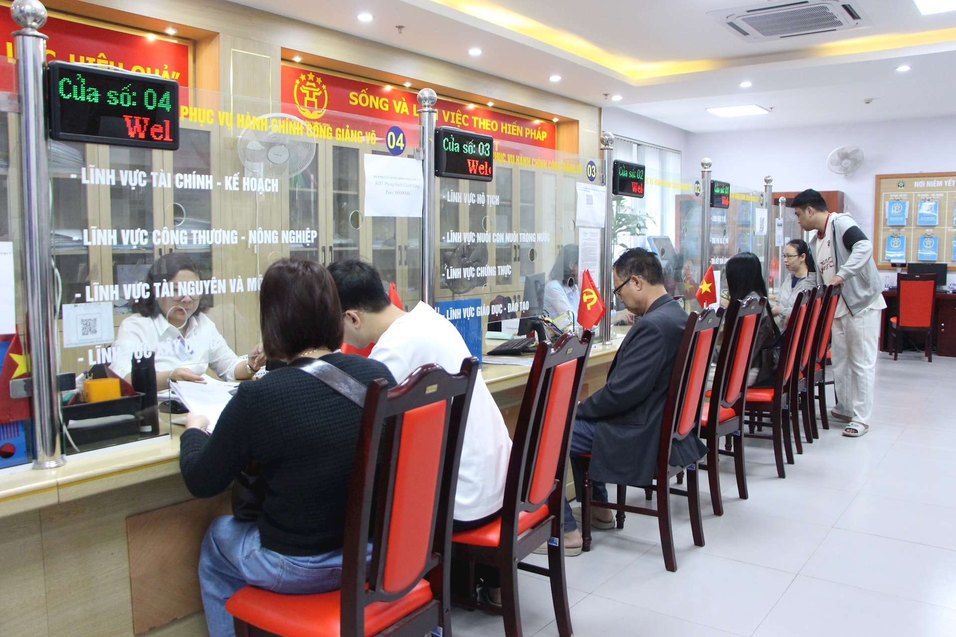 Người dân đến thực hiện thủ tục hành chính tại Điểm phục vụ hành chính công phường Giảng Võ. Ảnh: TT