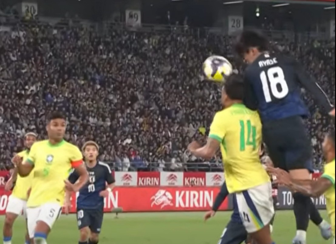 Phút 71, Ueda bật cao đánh đầu tung lưới thủ thành Souza của Brazil, khiến sân vận động Ajinomoto vỡ òa cảm xúc. Dù trung vệ Fabricio Bruno (cao 1,92 m) áp sát, Ueda – người vốn chỉ cao 1,82 m – vẫn chiến thắng trong pha không chiến và mang về bàn thắng quan trọng.