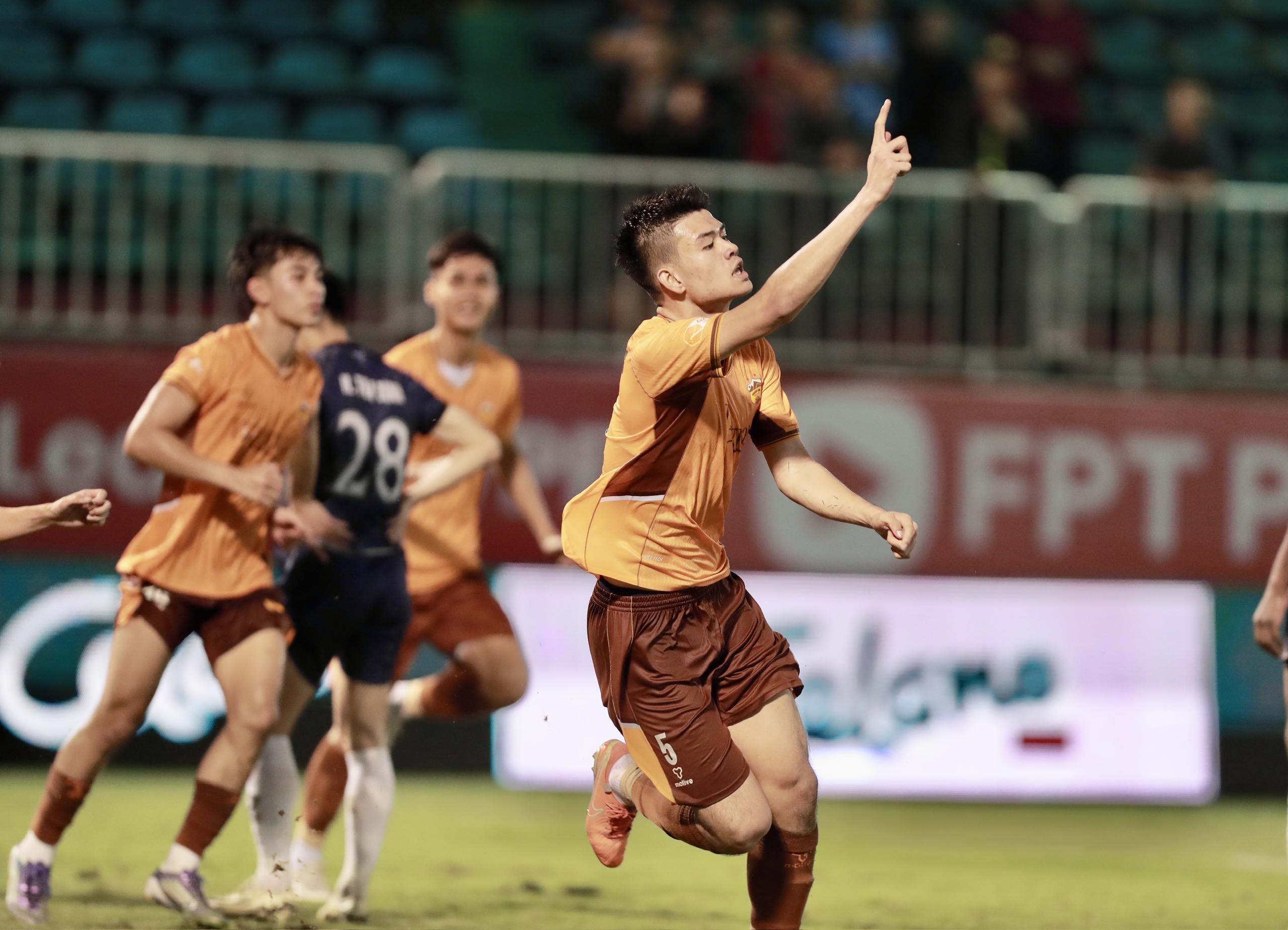 Niềm vui của Quang Kiệt sau bàn gỡ hòa cho đội chủ nhà vào cuối trận.
