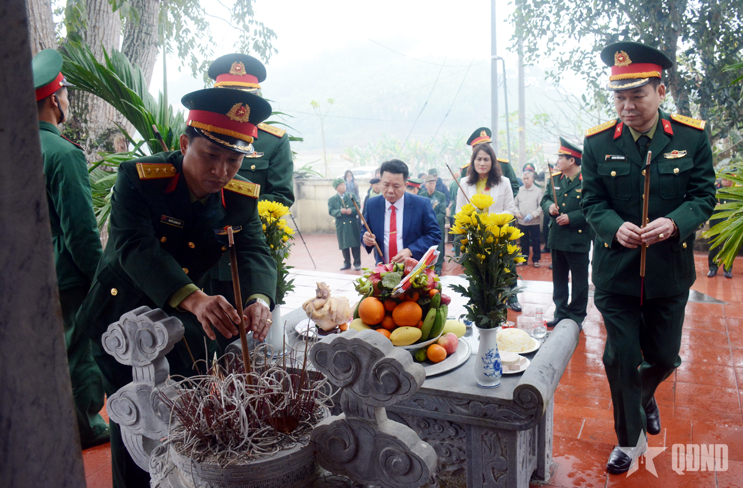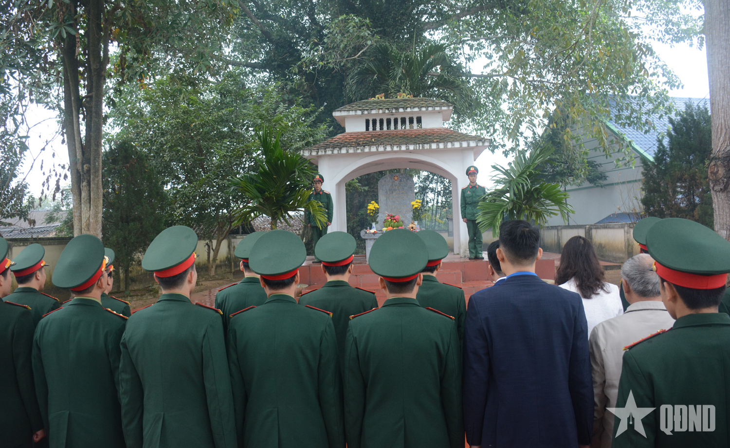 Tiếp đó, đoàn công tác đã dâng hương tại Nhà truyền thống Chi đoàn thanh niên cứu quốc đầu tiên trong Quân đội trong khuôn viên Trung đoàn 246 (Sư đoàn 346).