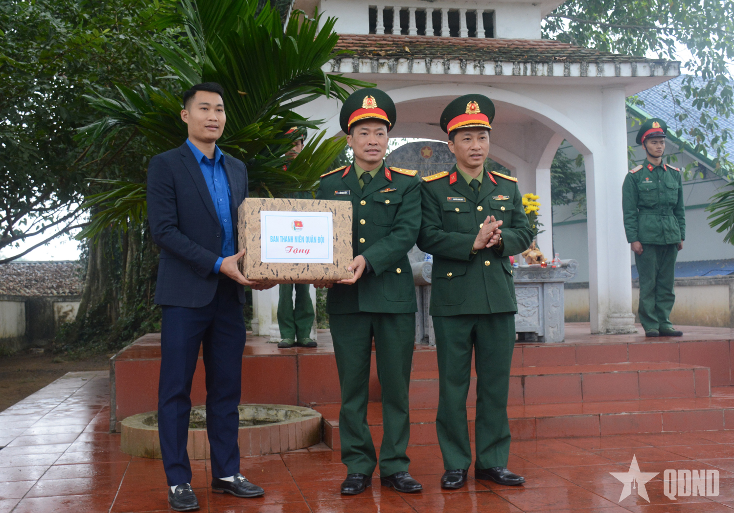 Lãnh đạo Ban Thanh niên Quân đội trao quà tặng tuổi trẻ xã Phú Xuyên.