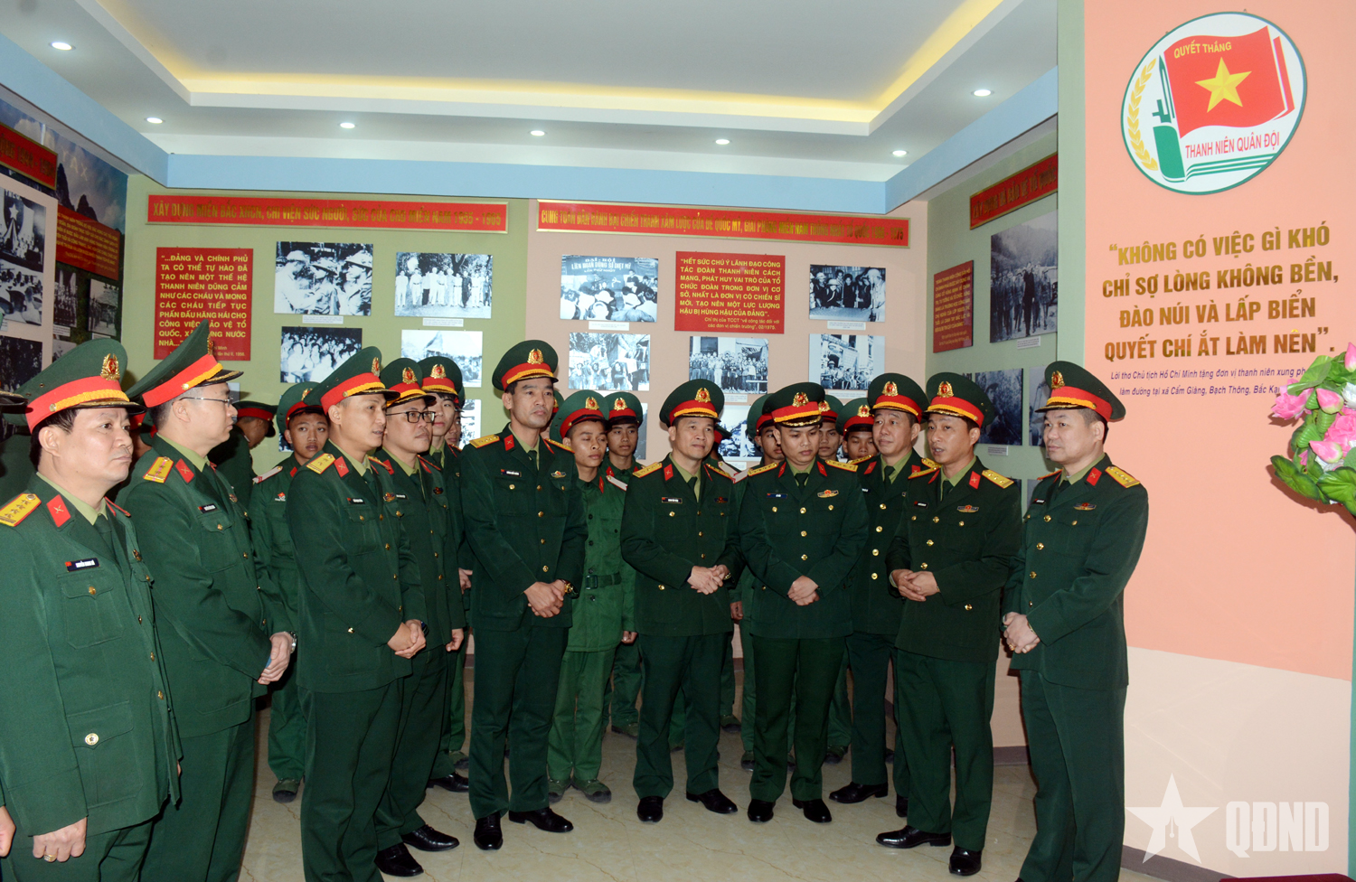 Các đại biểu tham quan Nhà truyền thống Chi đoàn thanh niên cứu quốc đầu tiên trong Quân đội tại Trung đoàn 246.