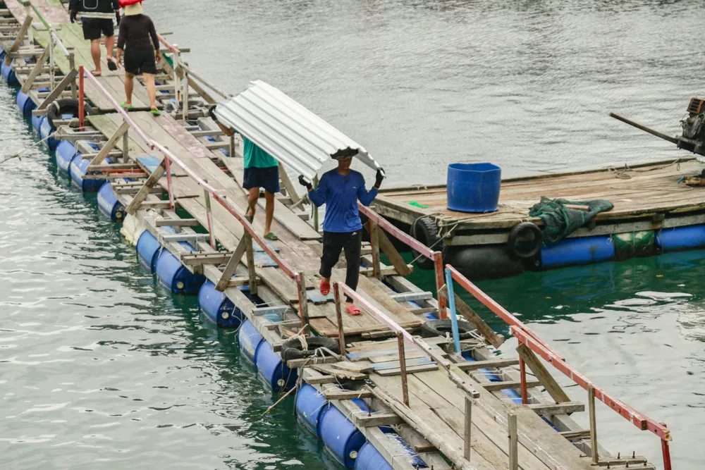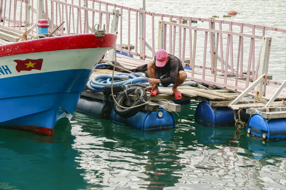Rút kinh nghiệm từ hậu quả hết sức nặng nề của cơn bão số 12 - Damrey năm 2017, các gia đình nuôi hải sản dùng dây thừng chằng buộc tất cả lồng bè.