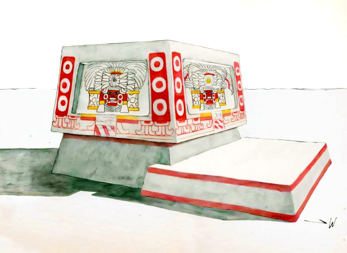 Khuôn mặt của nhân vật được đặc trưng bởi đôi mắt hình quả hạnh, một thanh chắn xỏ ngang mũi và hai vành tai. Những đặc điểm này rất giống với hình ảnh vị thần "Thần Bão" được tìm thấy ở miền trung Mexico. Ảnh: @Đại học Brown.