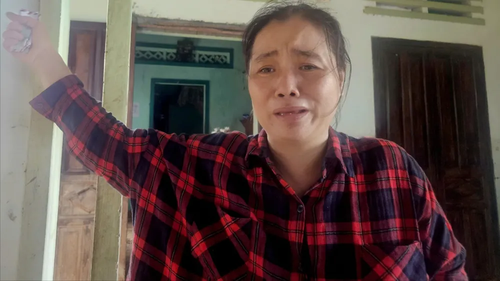 Bà Ngân khóc nghẹn mỗi lần nhớ lại khoảng khắc chồng cùng hai cháu rơi xuống nước lũ. Ảnh: M.M