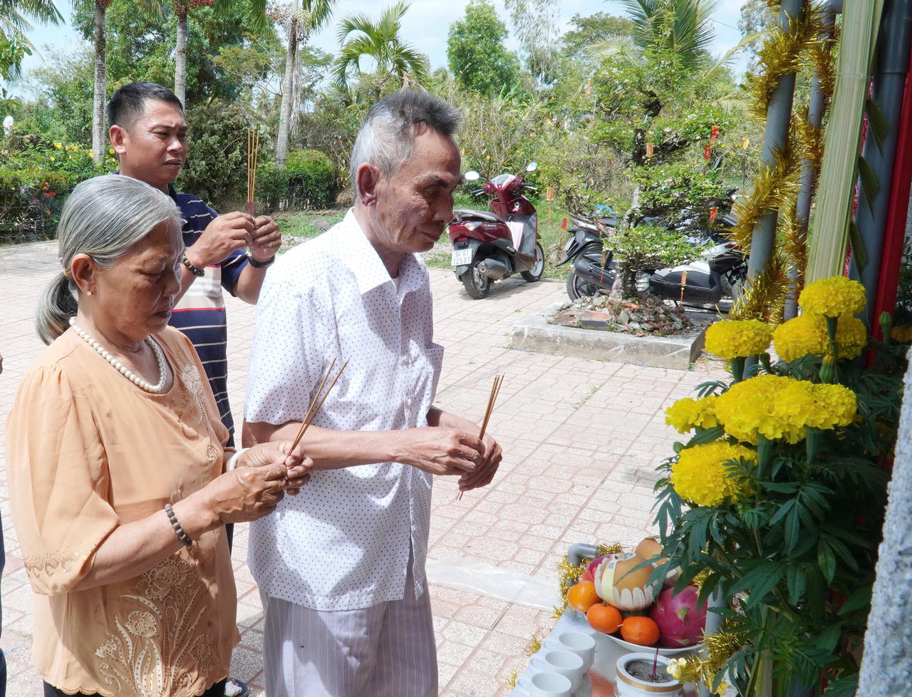 Ngoài mâm ngũ quả, bánh mứt, nhiều gia đình còn dâng mâm cơm ngày Tết, hằng ngày thắp nhang, dâng trà bánh thể hiện lòng thành kính. Mỗi nén nhang được thắp lên không chỉ là sự tri ân, mà còn gửi gắm ước vọng về một năm mới bình an, hạnh phúc, quê hương ngày càng đổi thay, phát triển.
