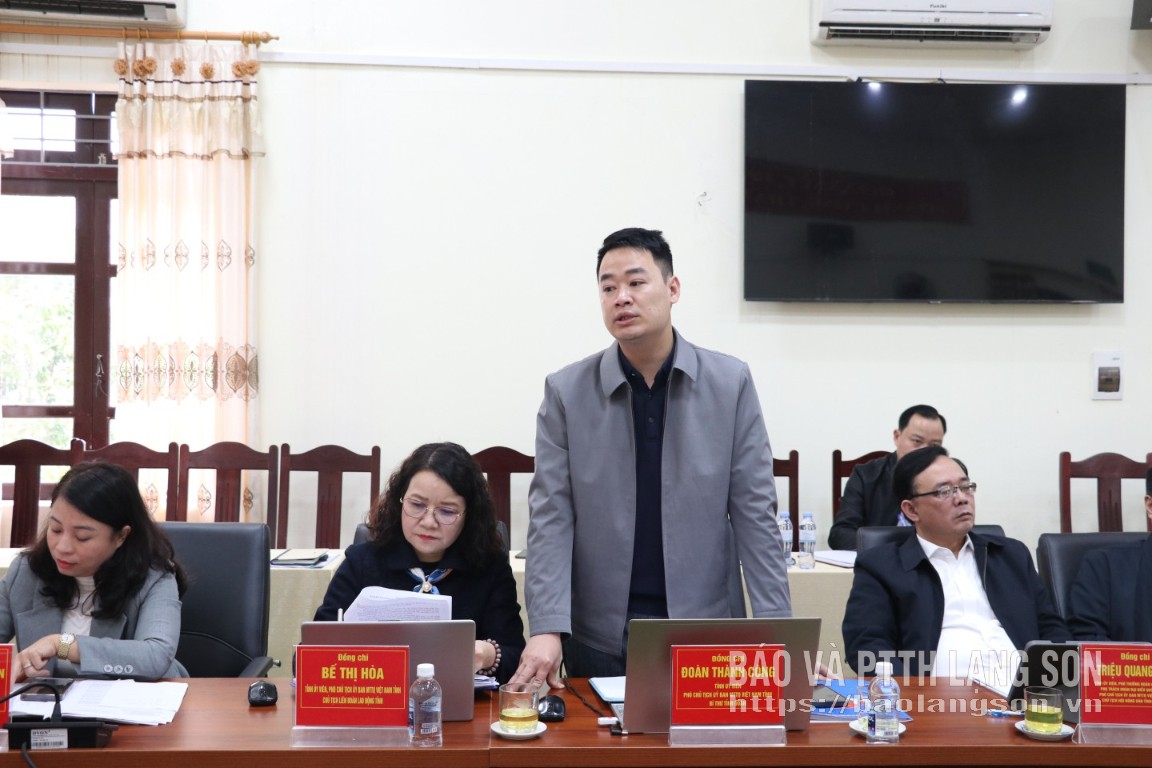 Đồng chí Nguyễn Hoàng Tùng, Ủy viên Ban Thường vụ Tỉnh ủy, Phó Chủ tịch Thường trực Ủy ban MTTQ Việt Nam tỉnh phát biểu tại buổi làm việc
