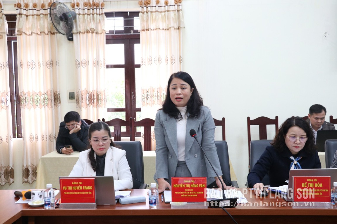 Tại buổi làm việc, các đại biểu đã tập trung thảo luận, đánh giá kết quả đạt được và nêu lên những khó khăn, vướng mắc trong hoạt động ủy thác cho vay đối với hộ nghèo và các đối tượng chính sách khác. Bên cạnh đó, các đại biểu đã đề xuất, kiến nghị giải pháp nâng cao hiệu quả công tác ủy thác cho vay với NHCSXH tỉnh như: tăng cường công tác tập huấn nghiệp vụ về quản lý vốn, kỹ năng giám sát cho cán bộ MTTQ và tổ tiết kiệm và vay vốn; đẩy mạnh công tác thông tin, tuyên truyền về các chương trình cho vay đến hội viên; tăng cường nguồn vốn chương trình cho vay hỗ trợ tạo việc làm, duy trì và mở rộng việc làm…