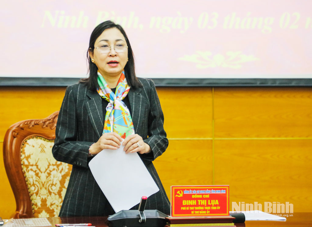 Đồng chí Đinh Thị Lụa, Phó Bí thư Thường trực Tỉnh ủy, Bí thư Đảng ủy các cơ quan Đảng tỉnh phát biểu chỉ đạo hội nghị.