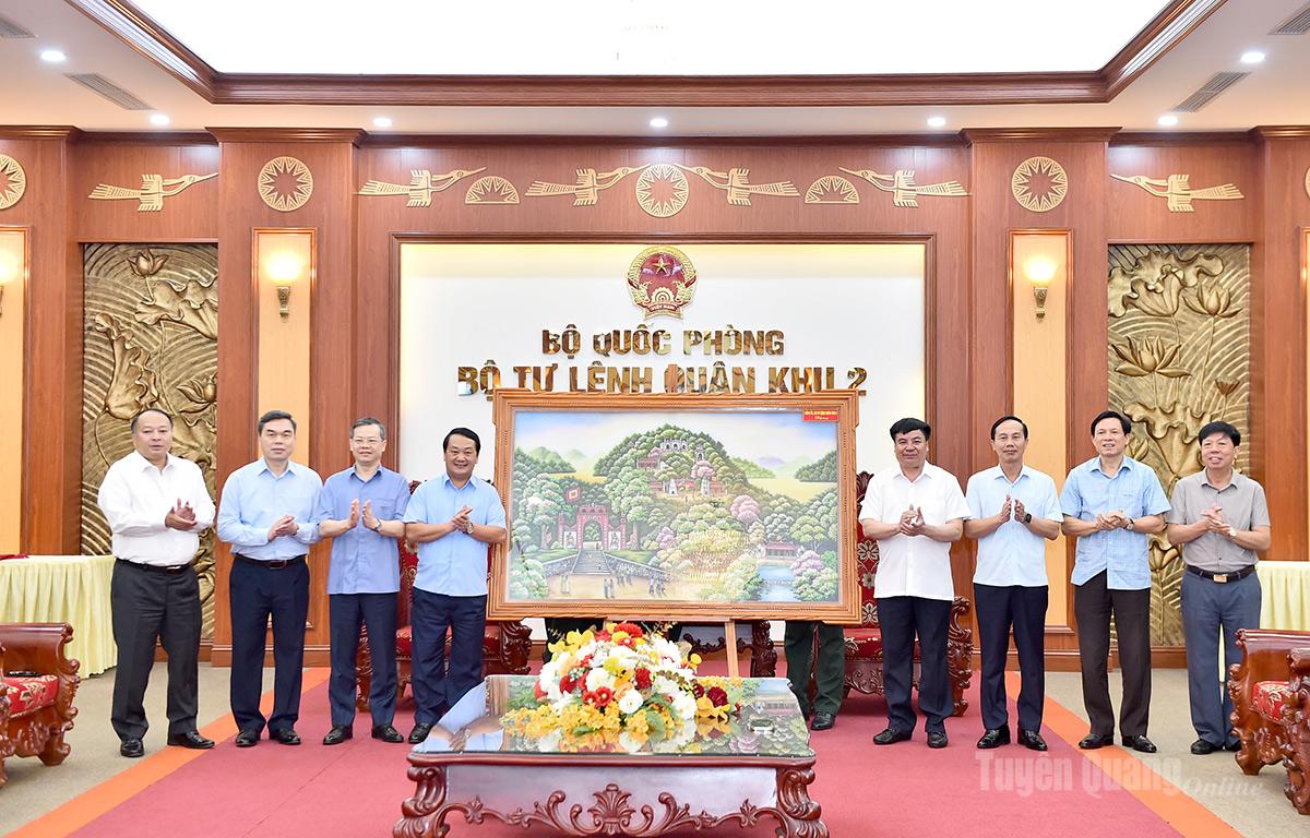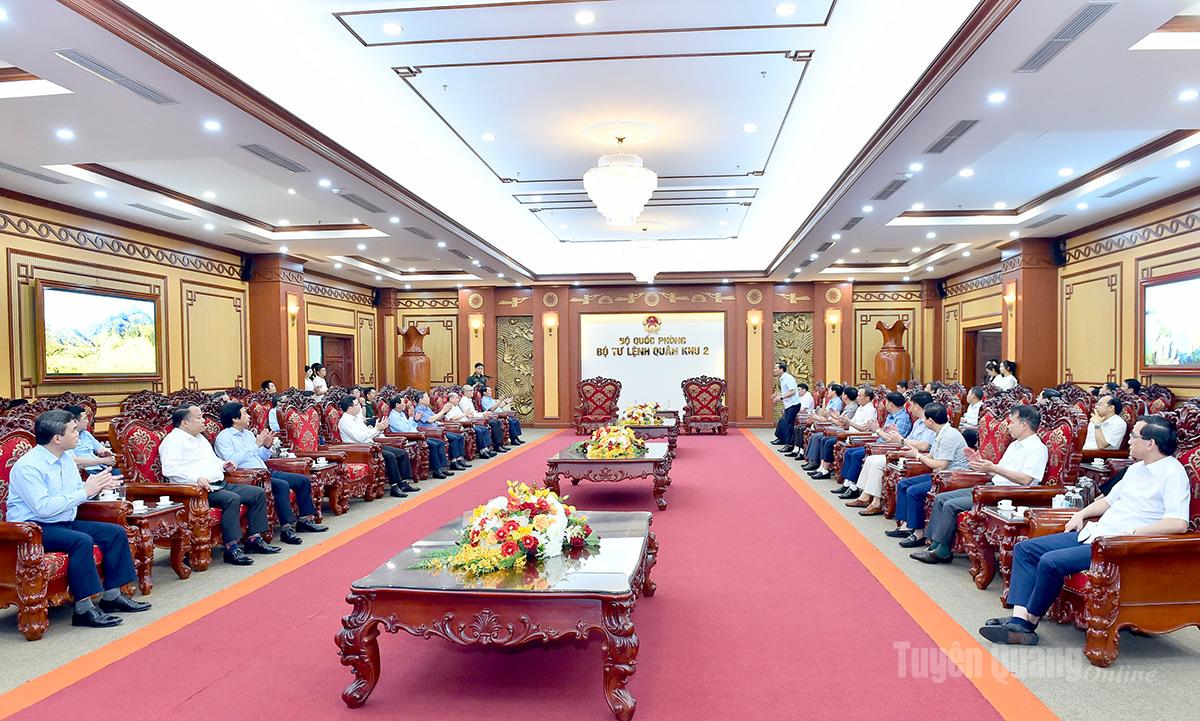 Đồng chí Bí thư Tỉnh ủy cũng mong muốn Quân khu 2 tích cực phối hợp, hỗ trợ tỉnh xây dựng lực lượng quân sự địa phương, nhất là lực lượng quân sự cấp xã đi vào hoạt động chính quy; rà soát, quản lý quỹ đất dôi dư các công trình quân sự, quốc phòng. Tỉnh Tuyên Quang cam kết phối hợp chặt chẽ với Quân khu 2 để lãnh đạo, thực hiện nhiệm vụ quân sự - quốc phòng trên địa bàn.