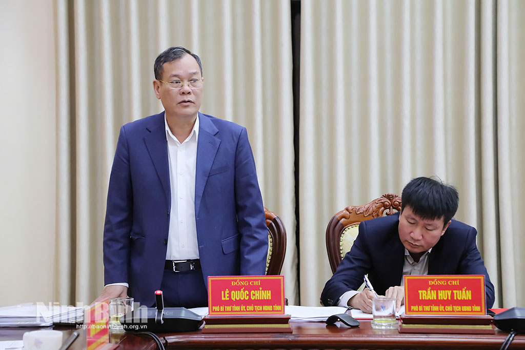 Đồng chí Lê Quốc Chỉnh, Phó Bí thư Tỉnh ủy, Chủ tịch HĐND tỉnh phát biểu tại Hội nghị.