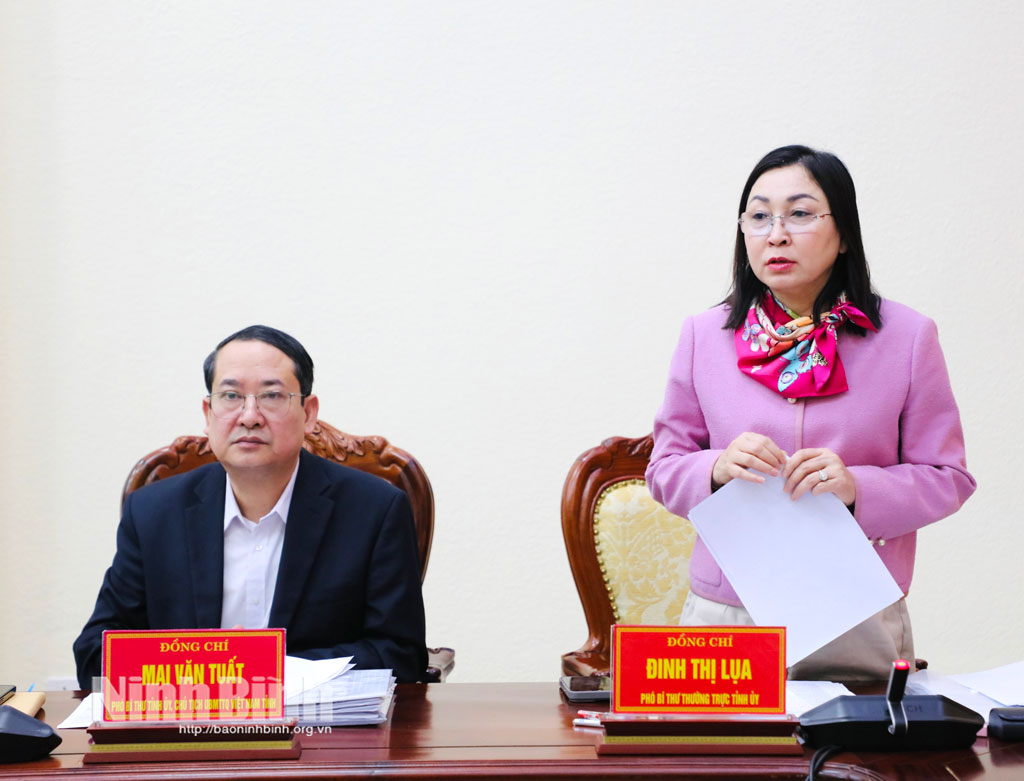 Đồng chí Đinh Thị Lụa, Phó Bí thư Thường trực Tỉnh ủy phát biểu tại Hội nghị.