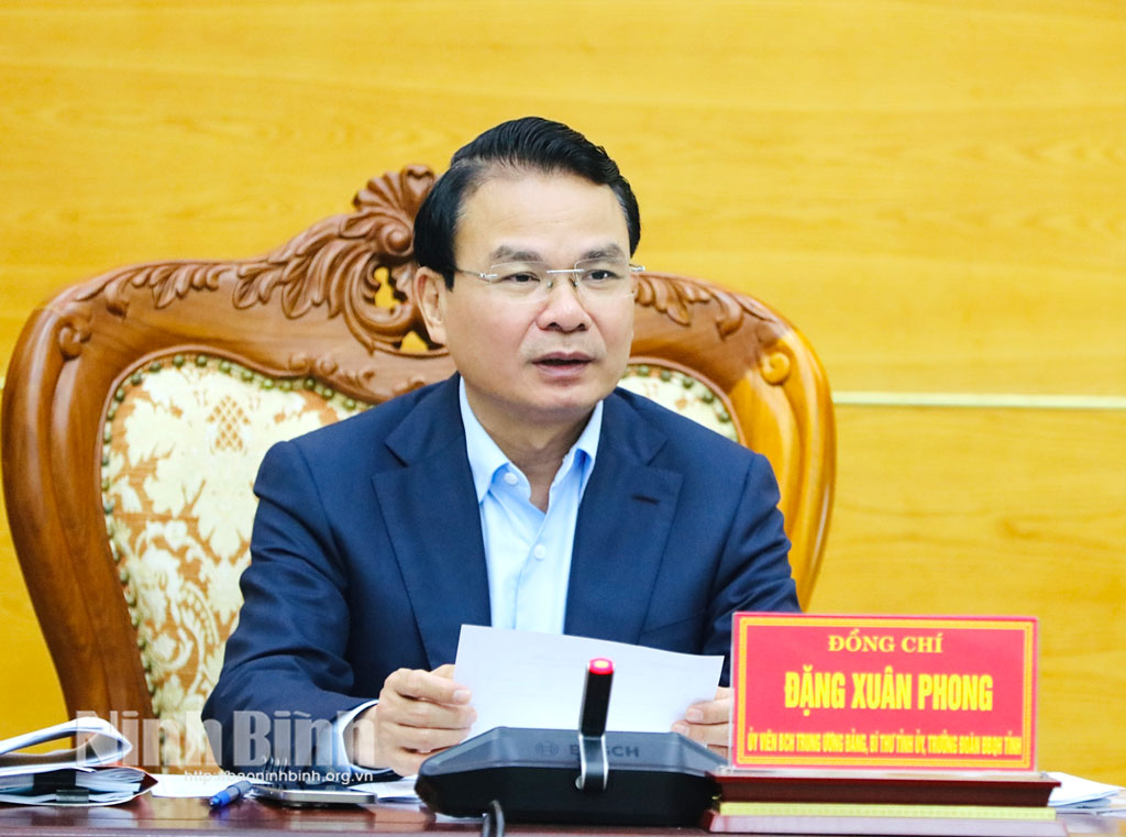 Đồng chí Đặng Xuân Phong, Ủy viên Trung ương Đảng, Bí thư Tỉnh ủy, Trưởng Đoàn đại biểu Quốc hội tỉnh phát biểu tại hội nghị.